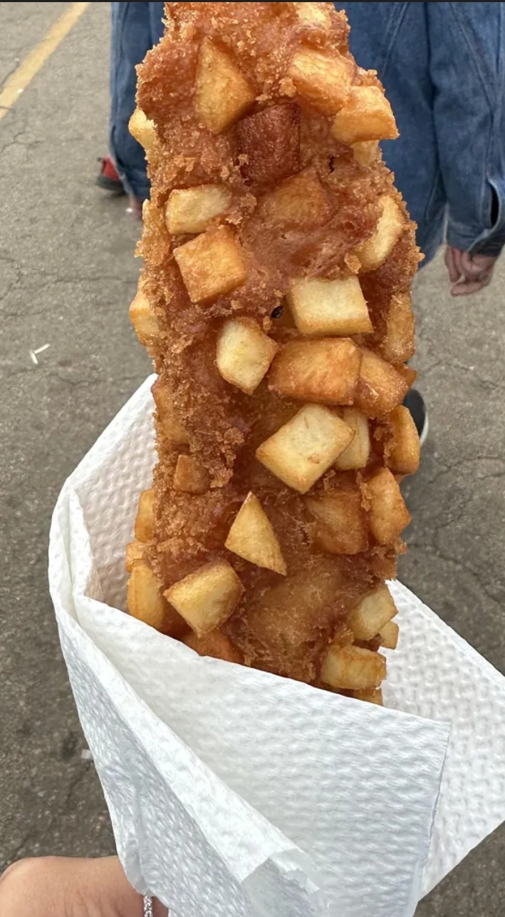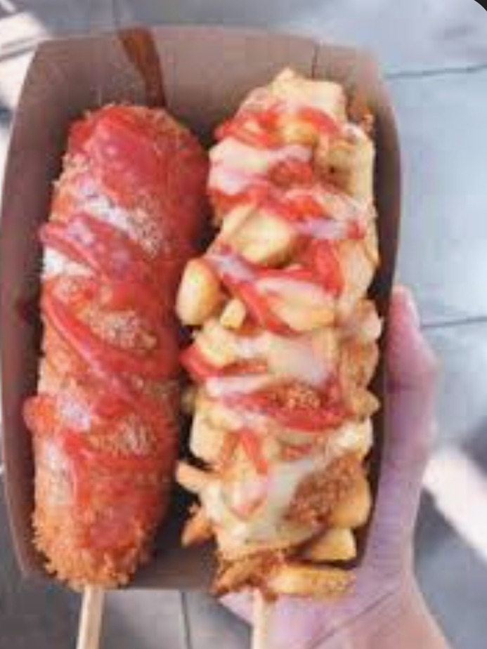 볼 것도 많고 탈것도 많고 먹을 것도 많기에 한 번쯤 구경 가봐도 좋으련만 미국서 살면서 난 단 한 번도 가지 않았었다. 그냥 사람 많은 곳을 별로 안 좋아하기 때문이었다. 아이들만 친구들과 함께 놀 수 있도록 돈을 주어 친구 부모님들과 함께 보냈었다. 하지만 올해는 실현되지 못했지만 몇십 년 전 나의 첫 사업 아이디어가 사실은 대박 상품 아이디어였다는 사실을 확인하는 자리였어서 뿌듯하게 다녀왔다. 바로 한국식 핫도그! 한국에서 직장 생활을 할 때 홍대 앞 포장마차에서 감자튀김을 둘러 붙여 튀긴 핫도그는 나의 최애 간식이었지만 나와 함께 근무하는 외국인 동료들의 최애 간식이기도 했다. 그때 난 이 핫도그는 전 세계에 전파해야 한다고 장난반 진담반으로 말하곤 했었다.