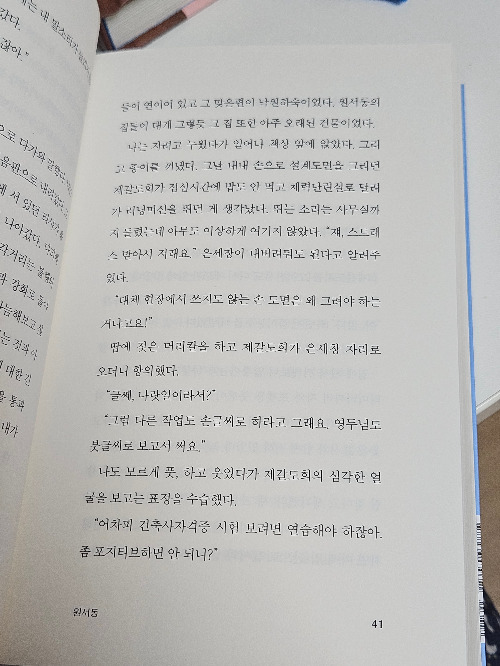 그리고 '책을 빠르게 넘기게 된다'라는 이유는 단순한 '몰입감' 때문만은 아니었다. 책의 판형이 작고, 여백이 많고, 행간이 넓다. 굳이 내 책상에 올려져있는 책들을 보며 얼마나 페이지가 작고 여백이 많은지를 비교해보았다.