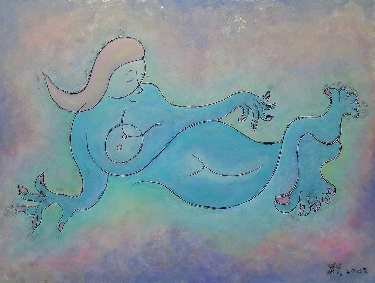 서양 미술의 오랜 소재 중 하나는 인체, 즉 사람의 몸이다. 뭐 따지고 보면 모든 학문이 인간을 탐구하는 거지만 미술에서는 인간의 몸이 가진 아름다움을 탐닉한다. 그래서 생겨난 게 누드화. 옷은 인간을 꾸며서 돋보이게도 하지만 인체의 아름다움을 가리는 장애물이 되기도 한다. 누드화는 이 장애물을 걷어버리고 몸에 흐르는 매끄러운 선이나 근육의 굴곡을 화폭에 담는다. 미술 전공자들은 인체 드로잉을 많이 하지만 미대의 문턱도 가보지 못한 난 드로잉 실력이 한참 뒤쳐진다. 게다가 비싼 돈을 주고 모델을 살 수도 없으니 상상에 의존할 수밖에 없다. 이왕 상상에 의존하는 김에 좀 더 신비스러운 느낌이 날 것 같아서 푸른 몸뚱이의 누드를 그려봤다.