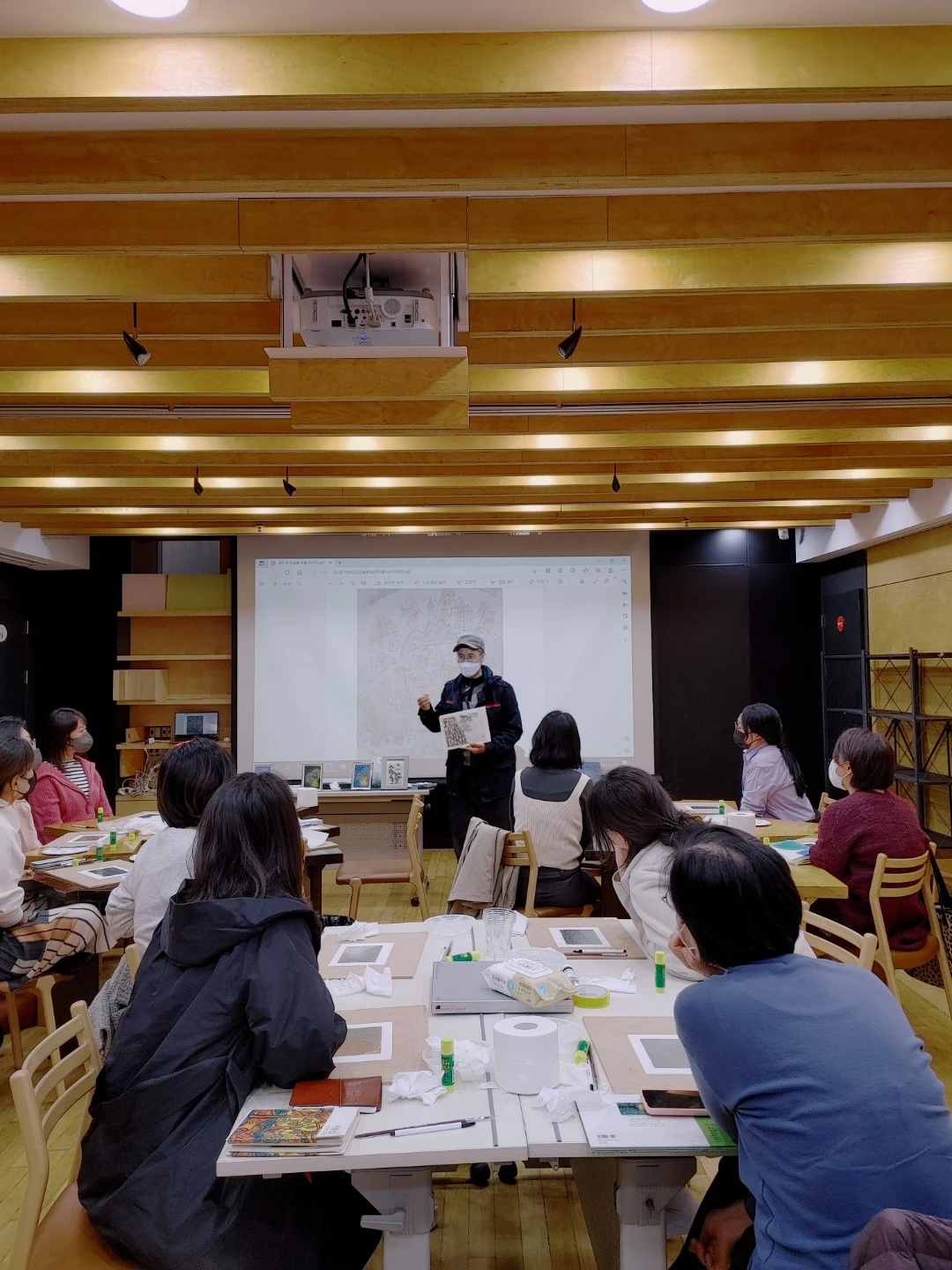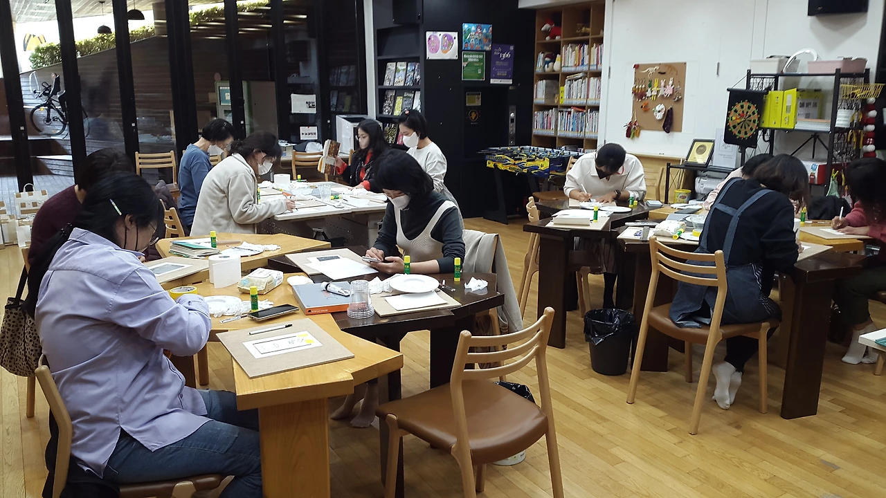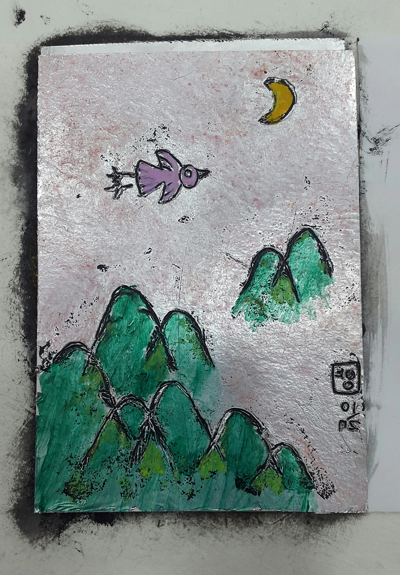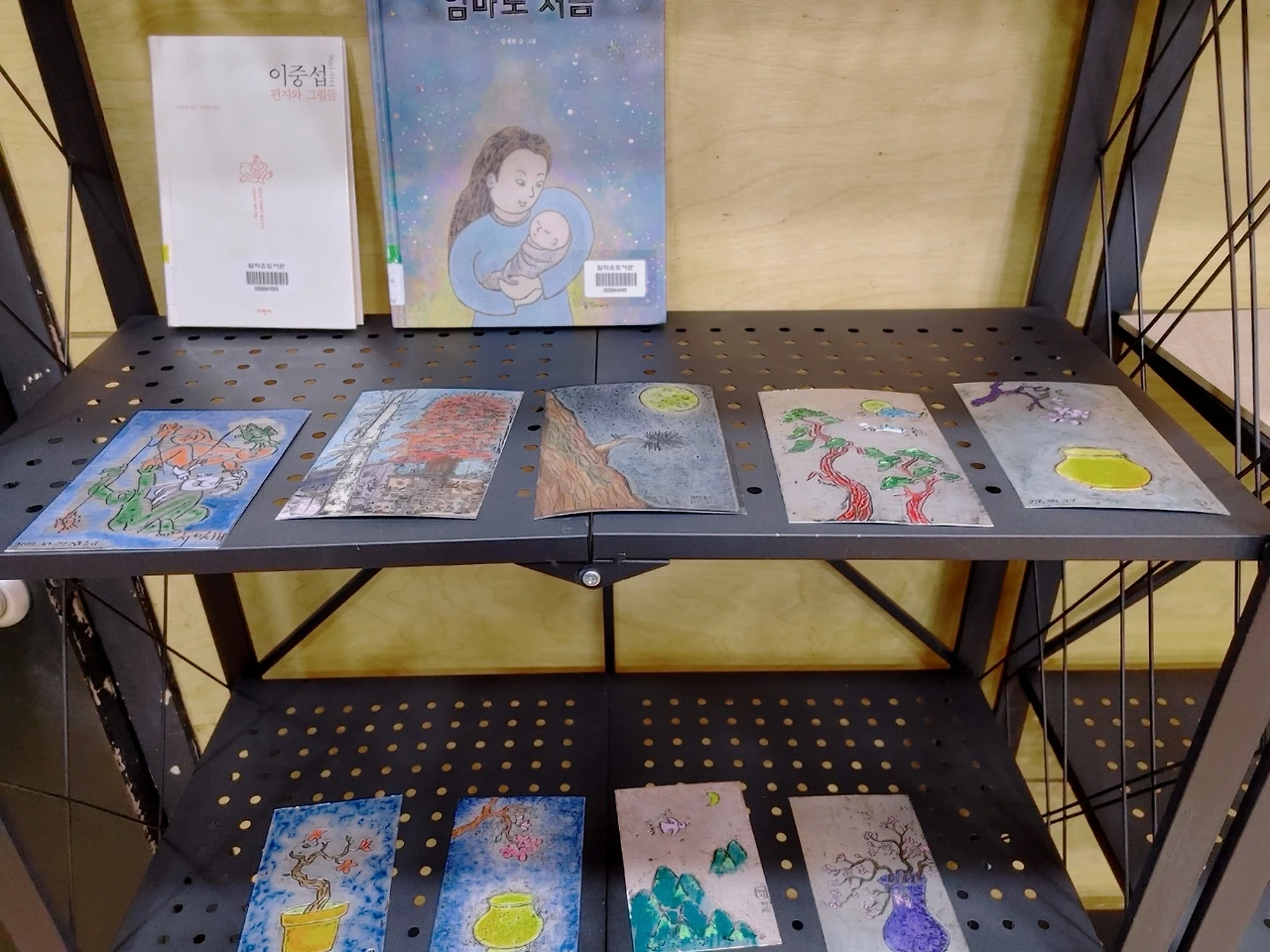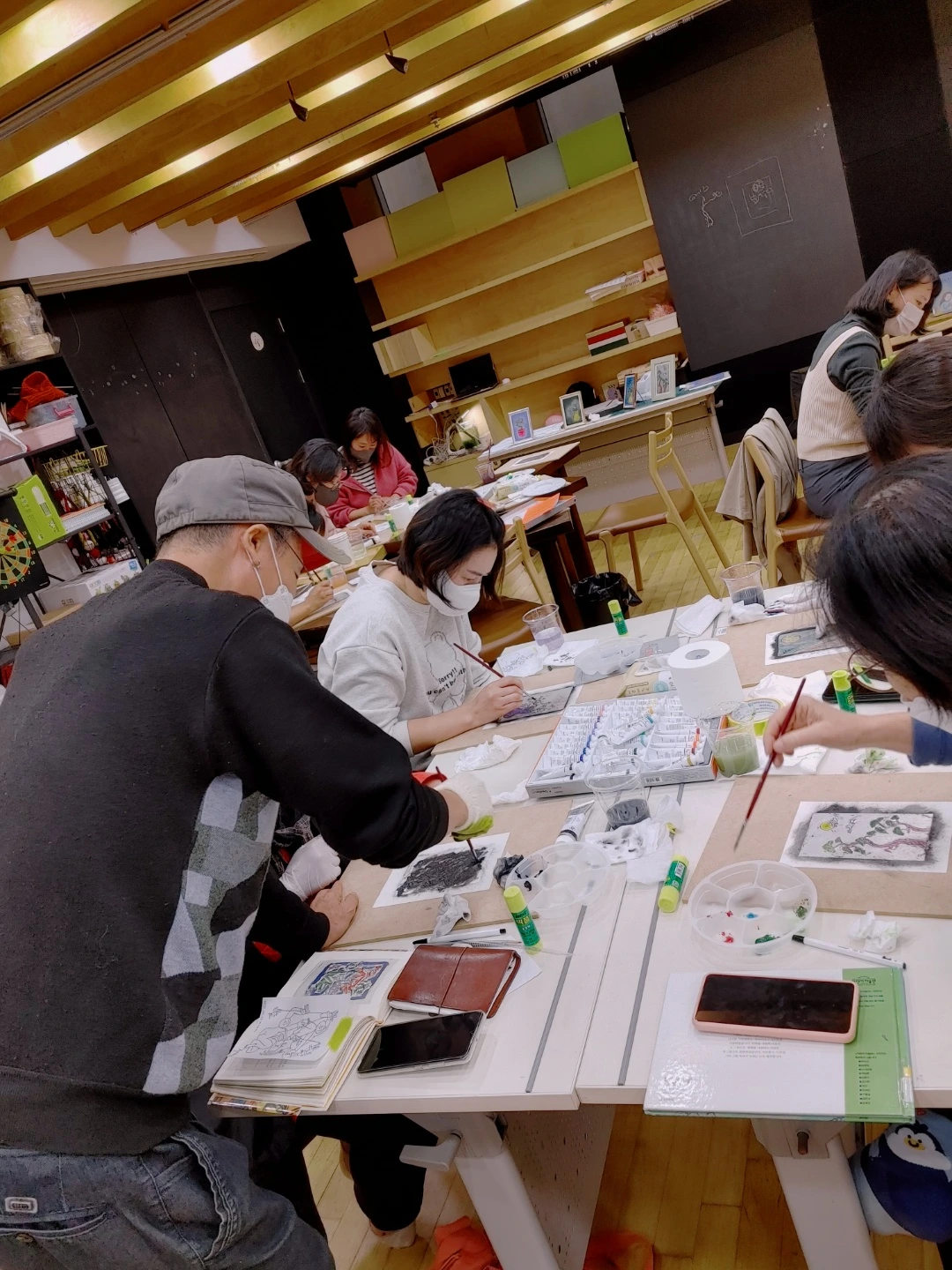 여긴 어디? 여긴 춘천! 내가 여기 온 이유는? 쓸데없이 빈둥대고 싶어서ᆢ 가 아니라 <담 작은 도서관 >ㅡ은지화 그리기 강습 때문. 내가 다녀본 도서관 중 탑 5에 들 만큼 아담하고 정감있다. 3시간 짜리 강습이라 아주 여유있을 줄 알았는데 눈코 뜰 새 없이 후딱 지나갔다. 어른들이 손에 물감을 묻힌 채 어린 아이들처럼 깔깔대며 재밌어 한다. 상을 주는 것도 아닌데 서로 잘 그리려고 마지막까지 안간힘이다. 불후의 명작을 만들지 않아도 된다며 거의 빼앗다시피 마무리지었다.
