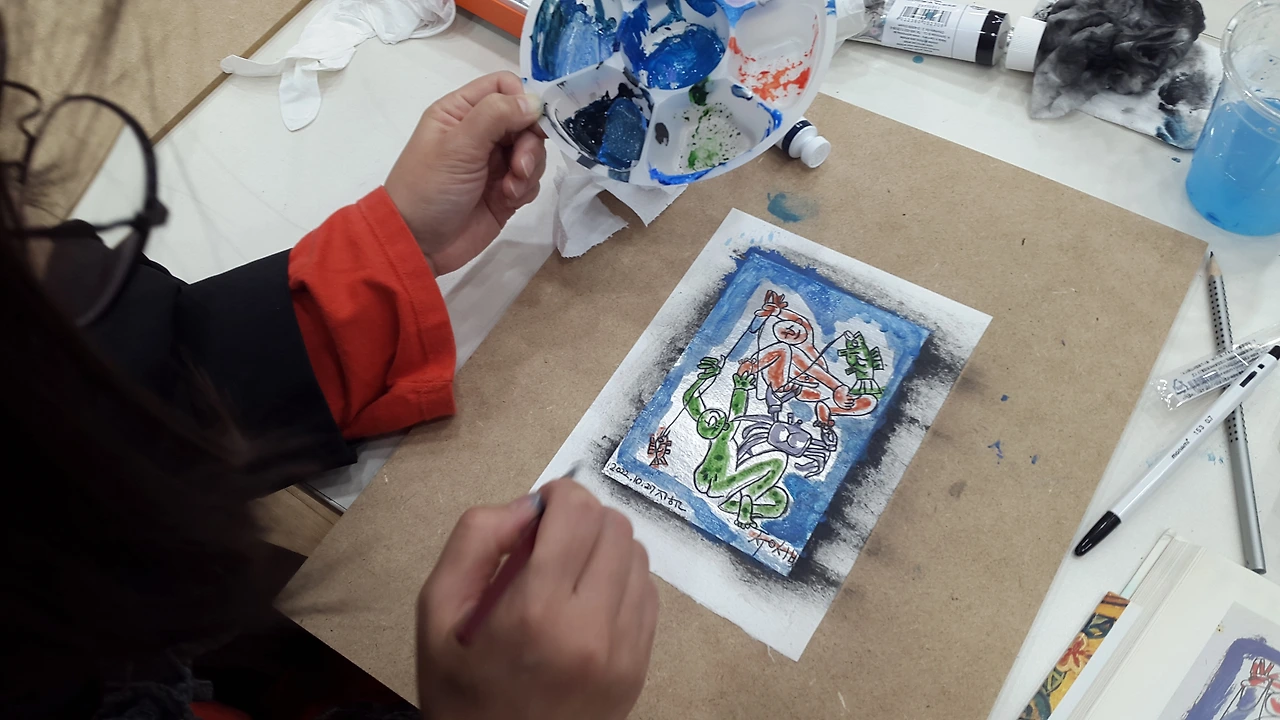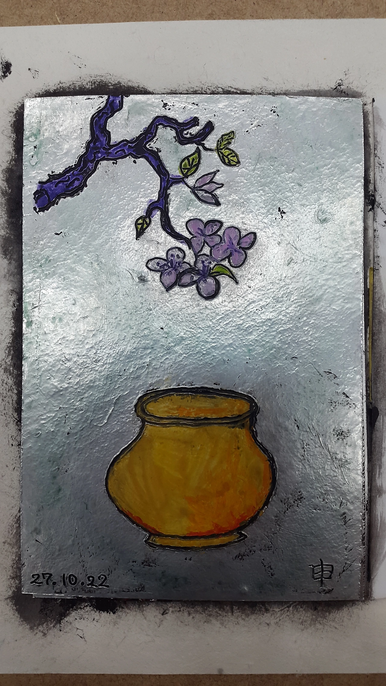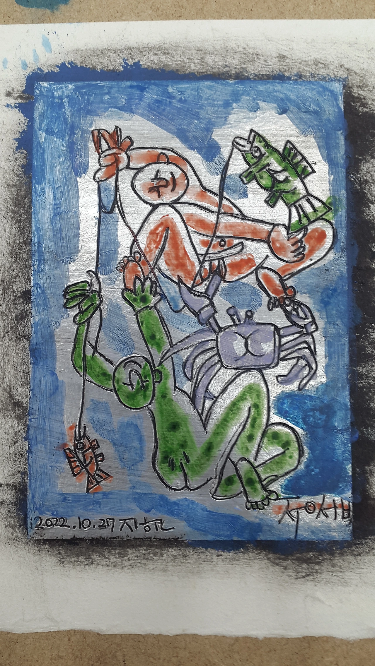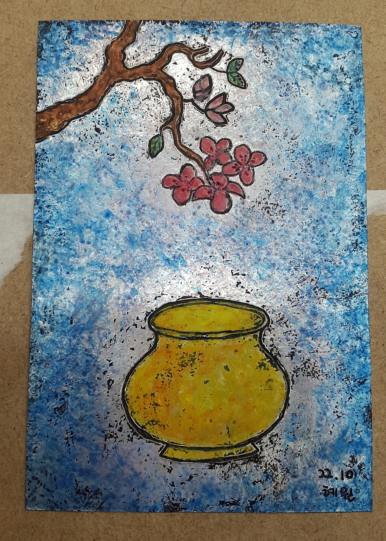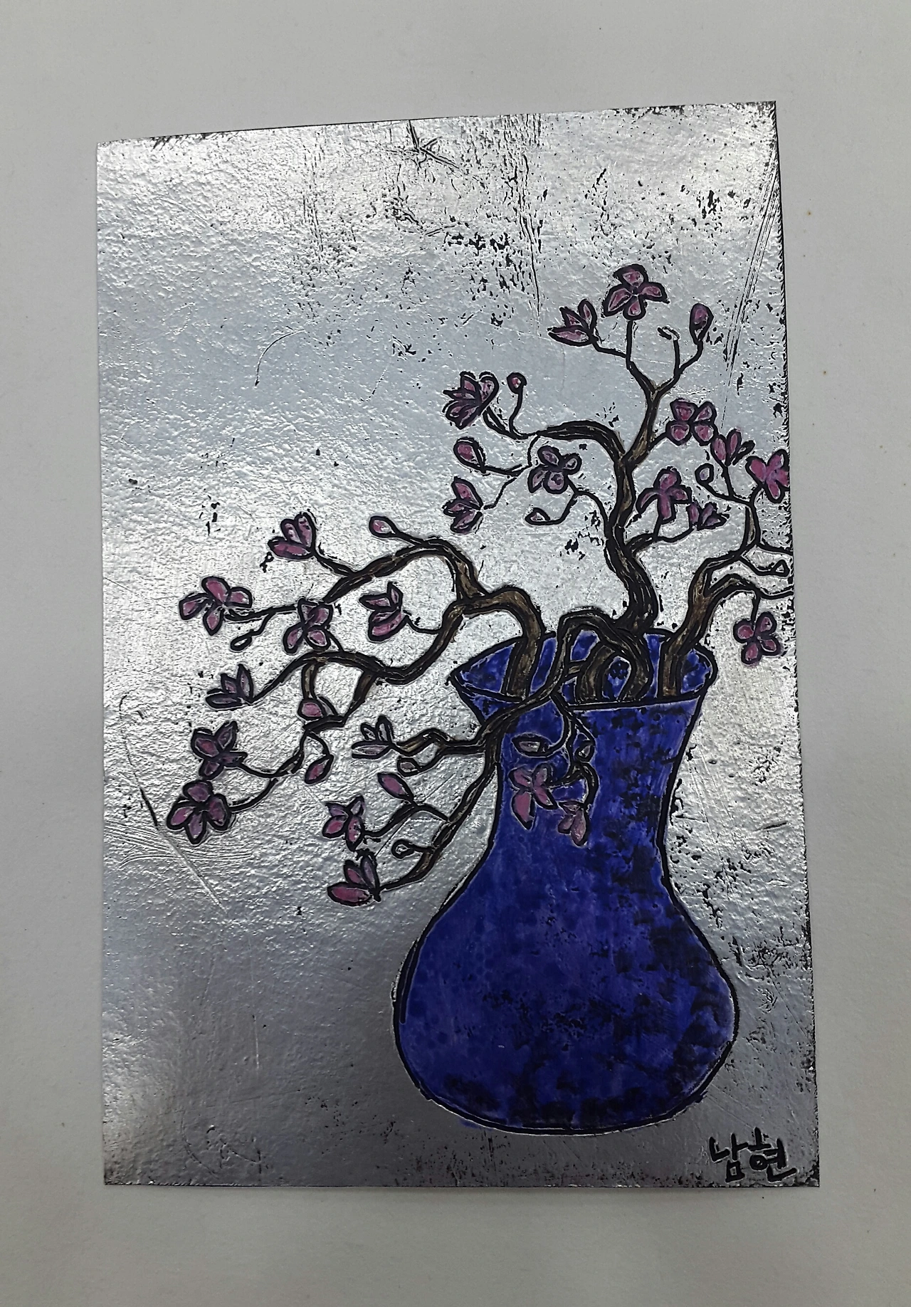 여긴 어디? 여긴 춘천! 내가 여기 온 이유는? 쓸데없이 빈둥대고 싶어서ᆢ 가 아니라 <담 작은 도서관 >ㅡ은지화 그리기 강습 때문. 내가 다녀본 도서관 중 탑 5에 들 만큼 아담하고 정감있다. 3시간 짜리 강습이라 아주 여유있을 줄 알았는데 눈코 뜰 새 없이 후딱 지나갔다. 어른들이 손에 물감을 묻힌 채 어린 아이들처럼 깔깔대며 재밌어 한다. 상을 주는 것도 아닌데 서로 잘 그리려고 마지막까지 안간힘이다. 불후의 명작을 만들지 않아도 된다며 거의 빼앗다시피 마무리지었다.