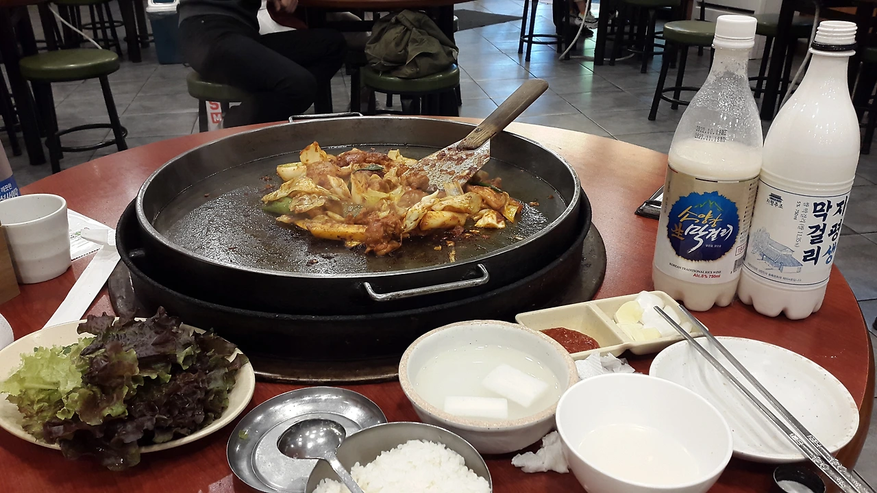 공지천의 상징인 물고기 조형물 앞에서 은지화 스케치 하나 그리고, 지역 대표 음식인 닭갈비와 함께 막걸리 한 사발 비운다. 물어물어 찾아간 닭갈비 거리인데 혼자라고 자리를 안 내줄까 은근히 걱정했지만 흔쾌히 자리를 내준다. 막걸리 매니아답게 지역 막걸리를 찾으니 소양감 막걸리를 내온다. 아뿔사. 그런데 이거 진짜 별로다. 첫 입맛에 실망하고 바로 지평 막걸리로 바꾼다.