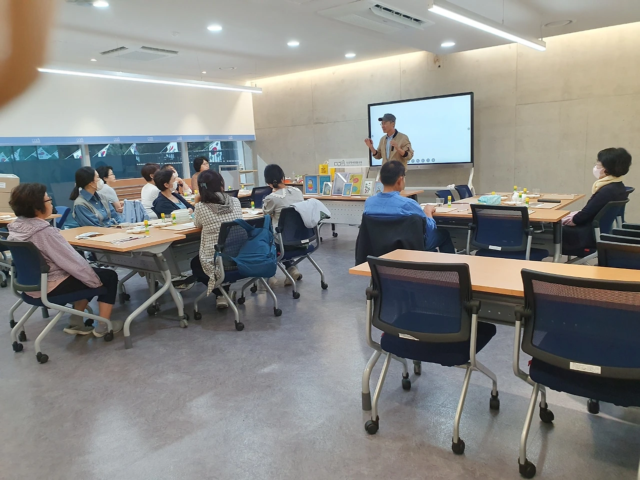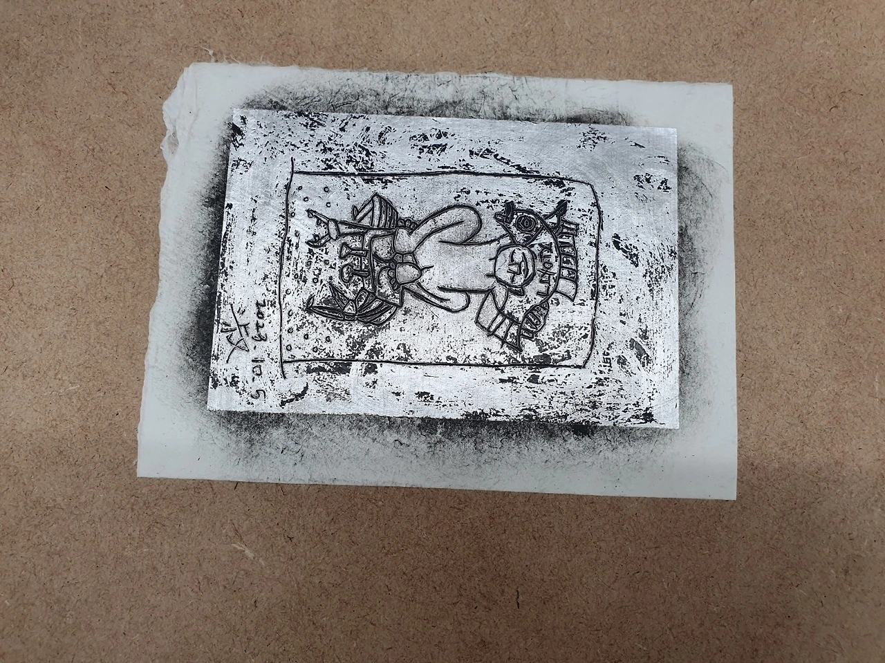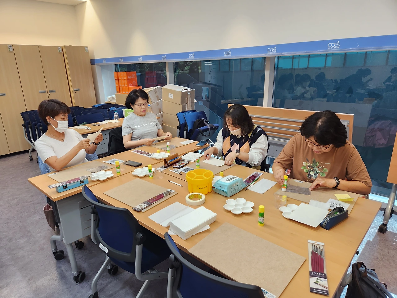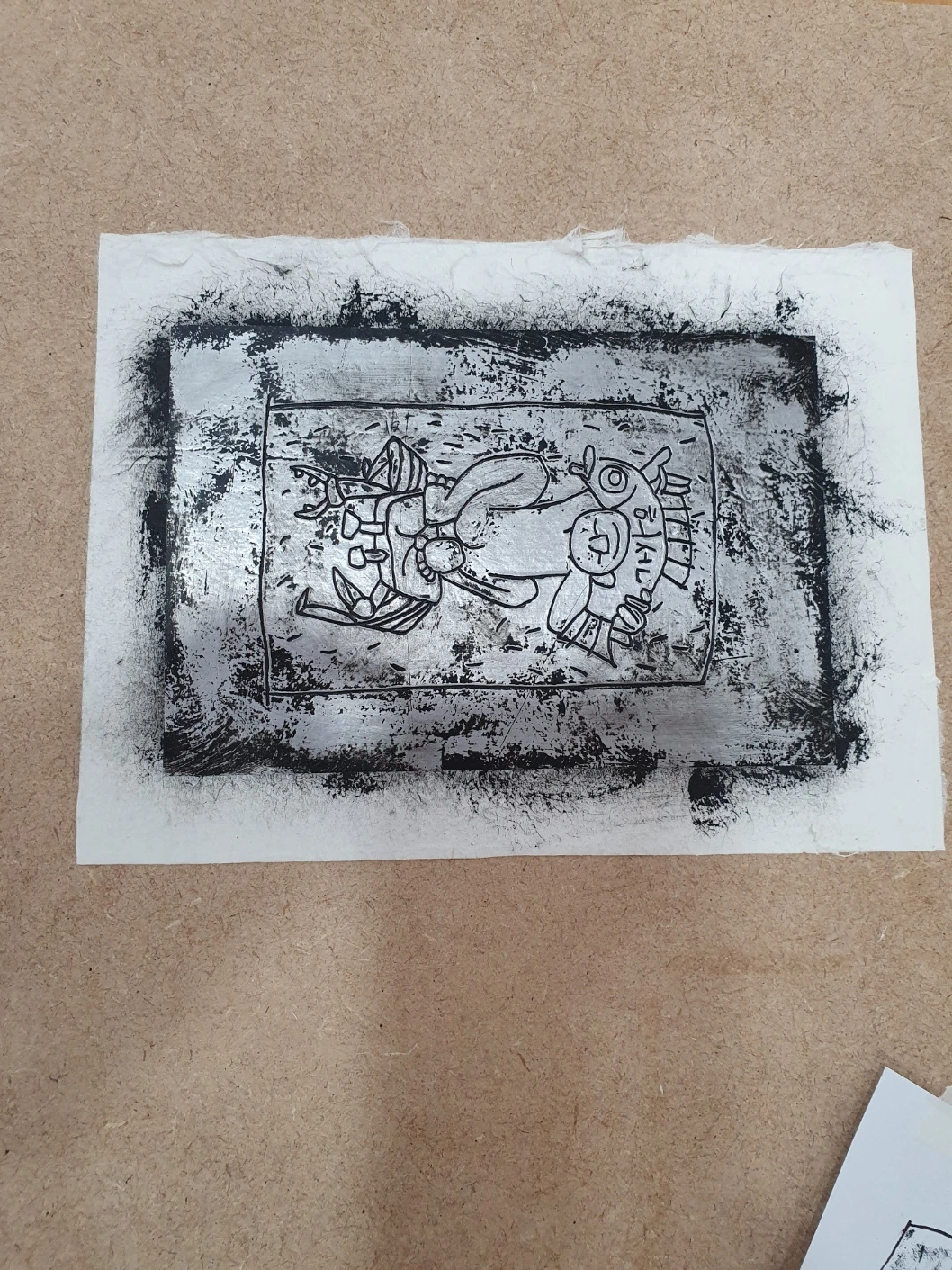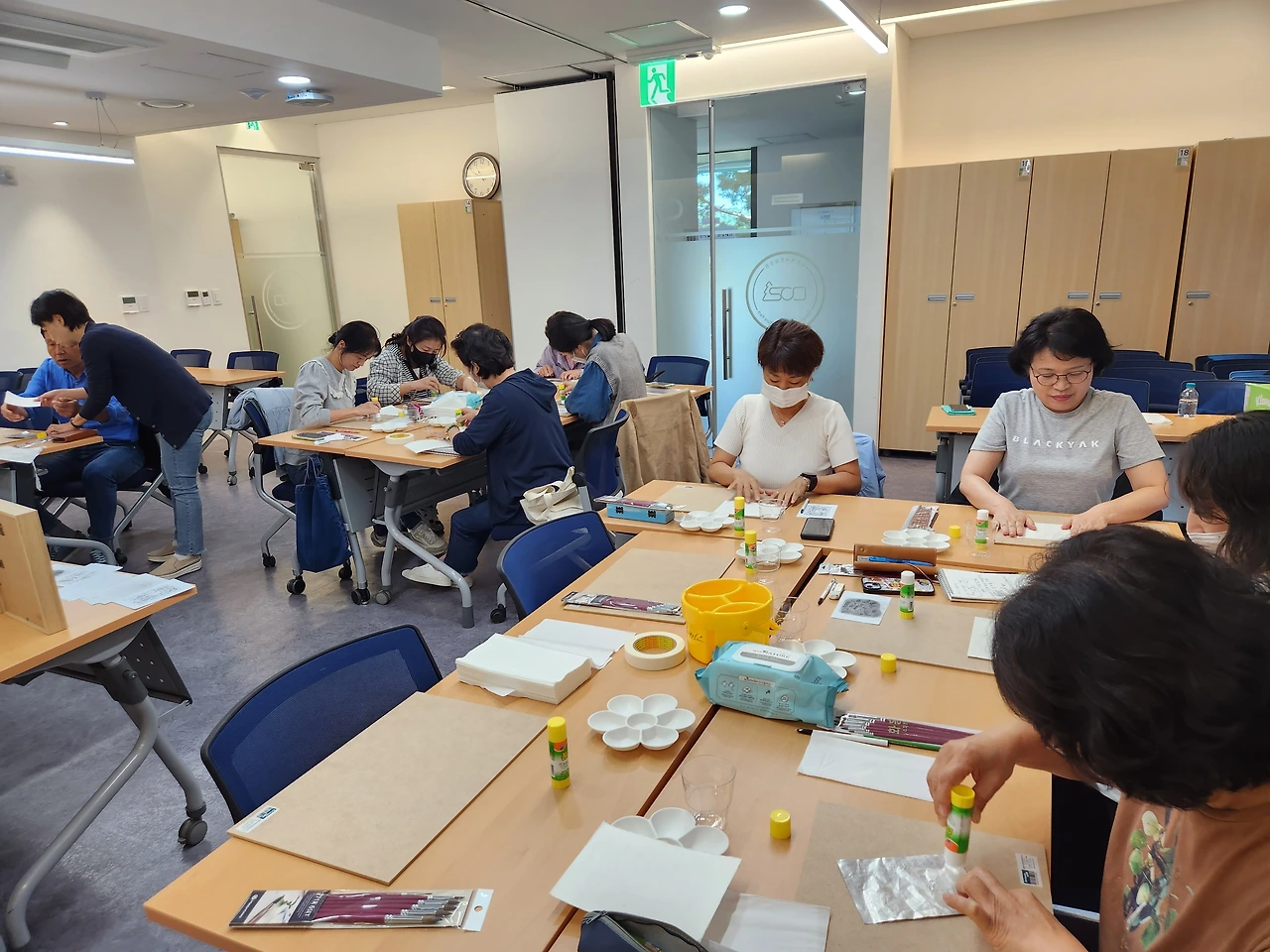 이곳에 묻힌 예술인은 비단 이중섭만이 아니다. 이름만 대면 알 만한 유명인들이 적지 않다. 그 때문일까? 올 가을 공원 전시관에는 <시대의 예술, 망우에서 만나다>라는 주제로 추모전이 열리고 있다. 그 일환으로 은지화 그리기 강습도 진행된다. 매주 목, 토요일 앞으로 10월 한달간 이어지는데 오늘은 그 첫 시간이다. 행사 담당자의 요청에 따라 이중섭의 작품을 그가 담배 은박지 그림에 썼던 기법 그대로 완성했다. 모두들 신기한 경험에 놀라워한다.