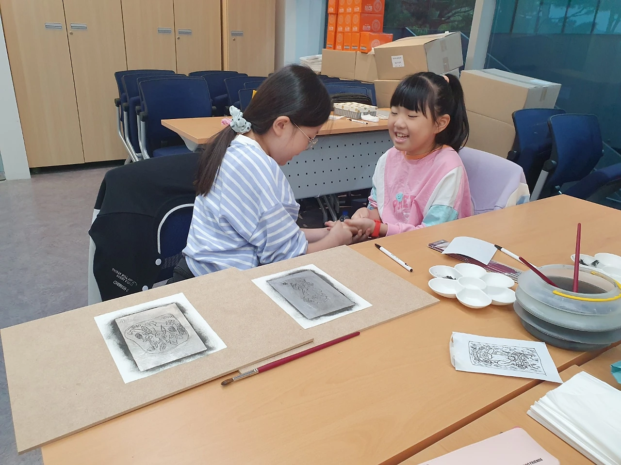 은지화는 어디서도 접하지 못한 신기한 미술체험인 까닭에 아이들이 좋아한다. 주방용품인 쿠킹호일이 멋진 작품으로 태어나는 것도 놀라운 경험이다. 서툰 손놀림이지만 아이들이 재미있어 하는 걸 보면 덩달아 즐거워진다. 목요일은 성인반, 토요일은 청소년반이다. 일주일에 두번이나 하는 강습이 고되기도 하지만 보람이 있다. 앞으로 4주동안 열심히 그려서 멋진 작품을 액자에 하나씩 넣어가길 기대한다. 그게 이 수업의 최종목표다.