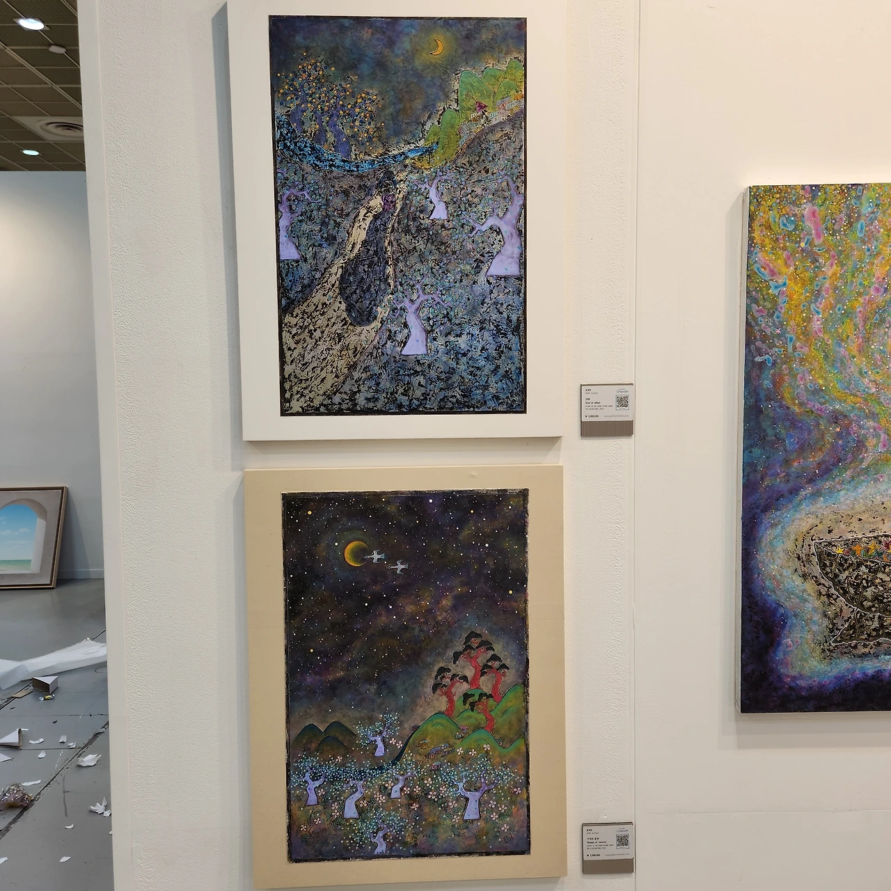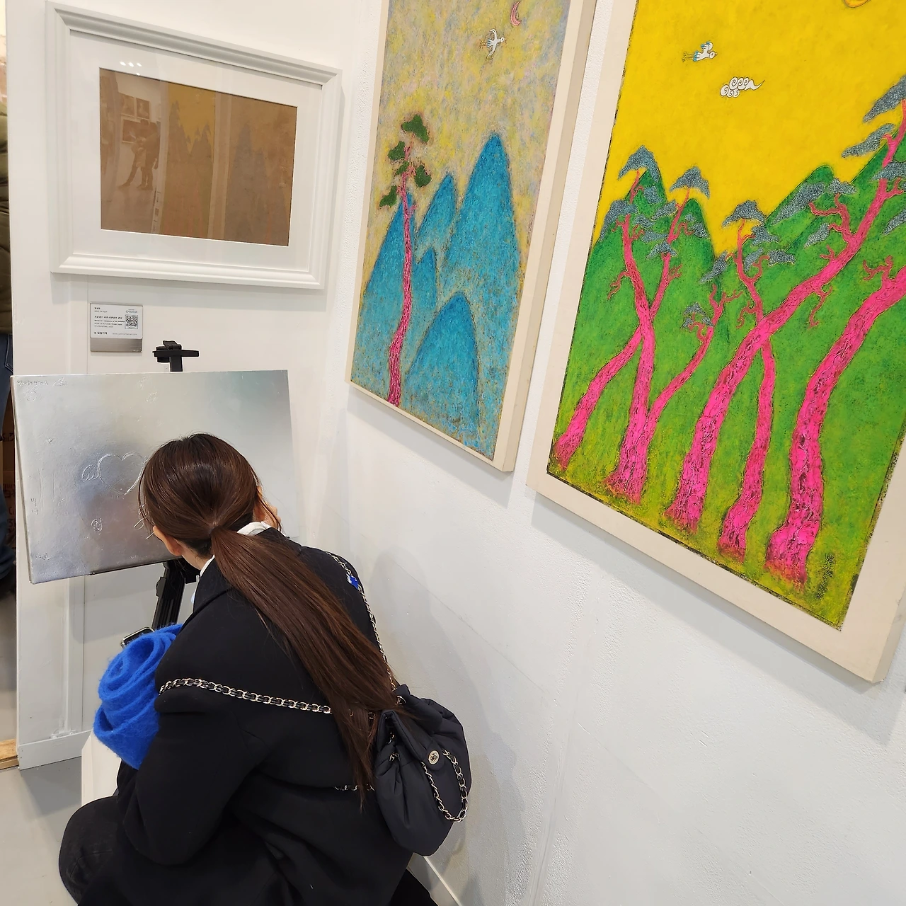 은지화의 그림 양식을 궁금해하는 분들이 많다. 한 청년이 꼬치꼬치 묻길래 친절하게 답변해주었다. 덧붙여 직접 작품 제작에 참여할 수 있는 <프로세스 아트>가 있다며 참여를 권했다. 그림 솜씨가 없다면서 한사코 손사래를 치길래 이름이나 싸인을 방명록처럼 써도 된다고 하니 그마저 사양하면서 조금 고민해보겠단다. 그냥 가겠거니 생각하고 잊었는데ᆢ 잠시 딴데 한눈을 팔고 돌아오니, 그 청년이 20여분째 화판을 끌어앉고 불후의 명작(?)을 그리고 있다. 모임에서 노래 못한다고 손사래치던 사람이 무대에 올려놓으면 끼를 발산하며 좌중을 사로잡는 모습을 보는 듯하다. 혼자 보기 아까워 사진 좀 찍겠다니 신경도 안 쓰고 혼신의 힘을 다해 예술혼을 불태운다. 뒷모습을 보면서 자꾸만 웃음이 나온다.