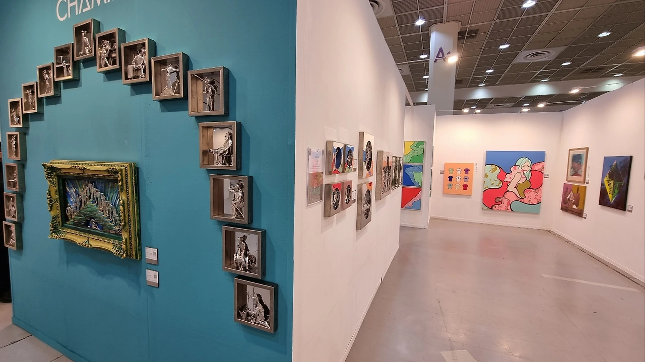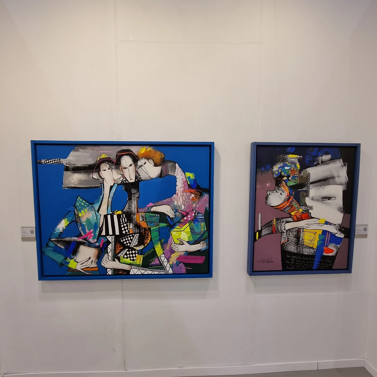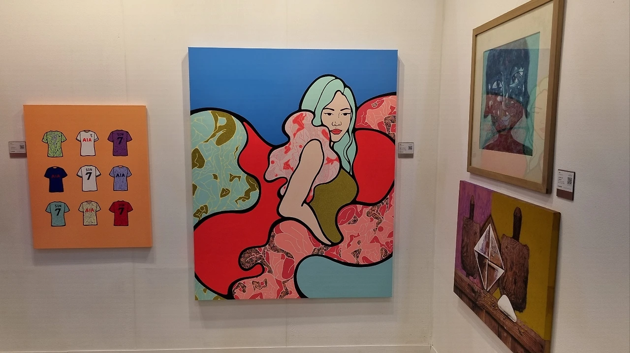 경쾌하면서도 화려한 색채감으로 관객의 눈길을 사로잡는 강혜정 작가님, 도회적 패셔니스타의 은밀한 욕망과 고독을 발랄하게 그려내는 전현경 작가님, 인간 퍼즐로 내면의 다중 자아를 표현하는 최영미 작가님, 다양한 인생의 장면을 심오하게 담아내는 스틸 아티스트 박기웅 작가님, 우주의 원형 둥근 원으로 아름다운 심미적 이미지를 창조하는 경달표 작가님, 프린팅 화면을 활용해 기발한 이미지 전환을 이뤄내는 고 김명수 화백님, 그리고 은지화라는 엉뚱하고 해괴한 듣보잡(듣도 보도 못한 잡놈) 작가로 발을 담근 저도 한몫을 했죠.