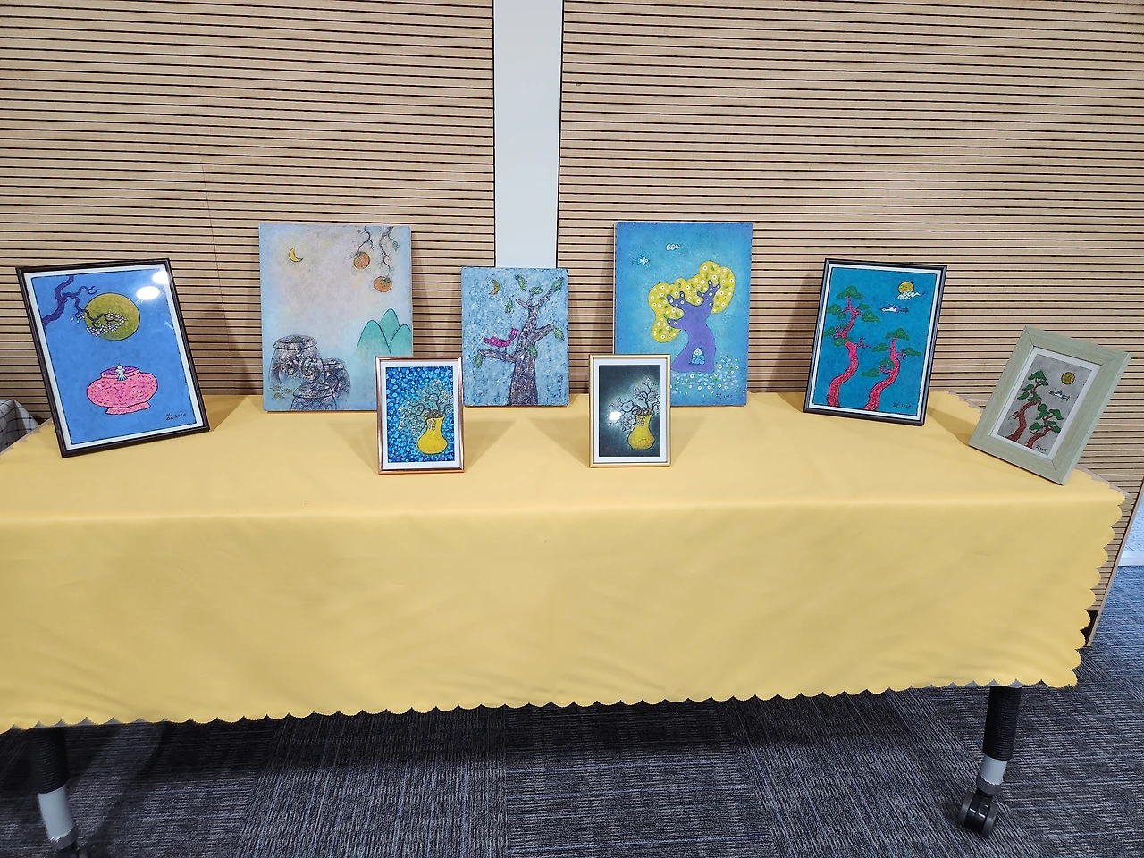 ㅡ 지금 병원에 계시거든요. 아프시기 전에는 제가 여기저기 모시고 다녔는데 지금은 그러기 어려워요. 몸은 병원에 있지만 이름만이라도 바깥 나들이를 하시라구요. 해외 전시도 꼭 했으면 좋겠어요!