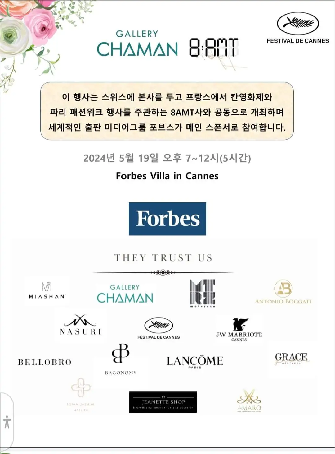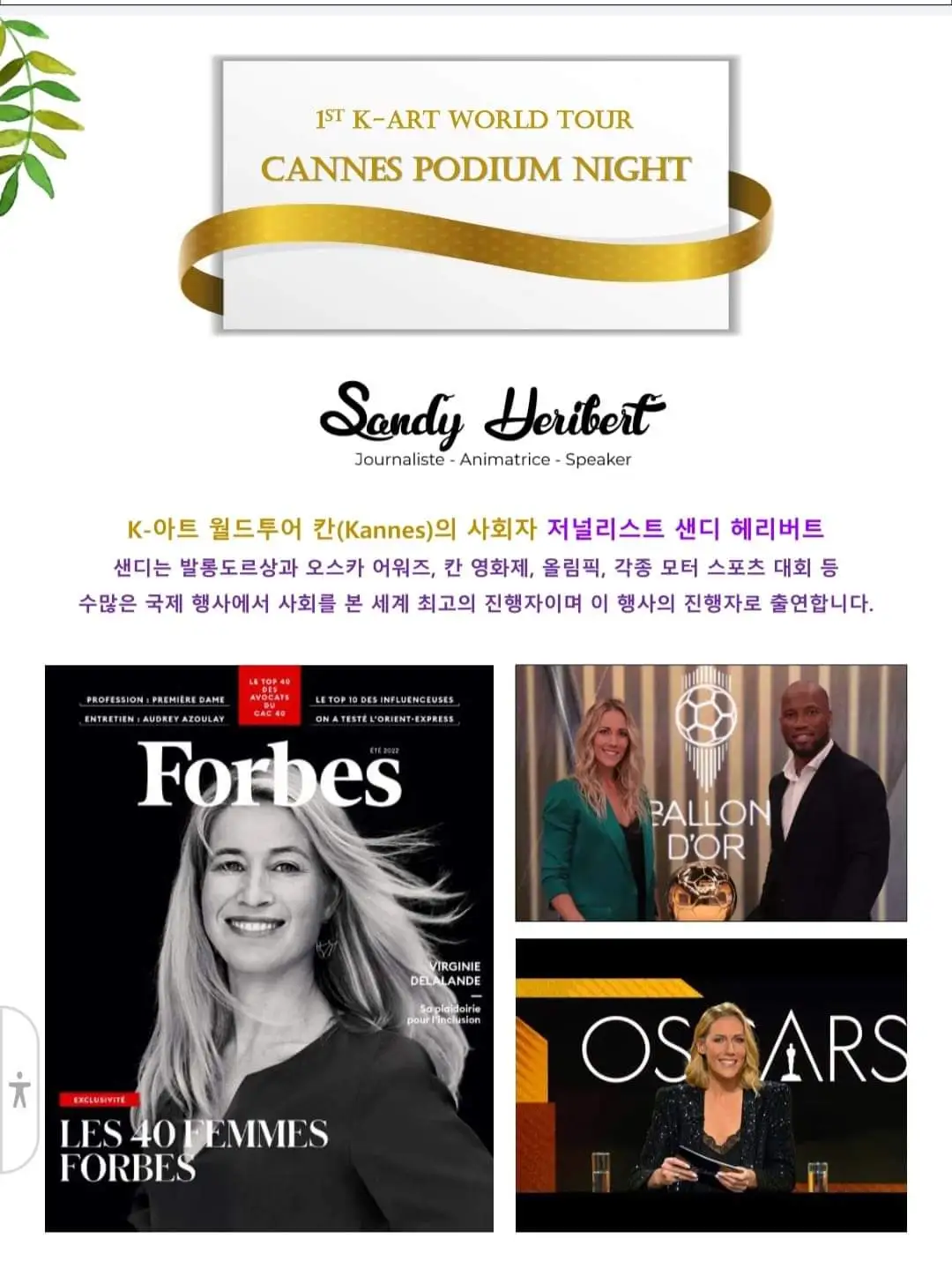 이번 행사는 칸 영화제 기간 중인 오는 19일 팔레 데 페스티발 인근에 위치한 포브스 빌라에서 열린다.