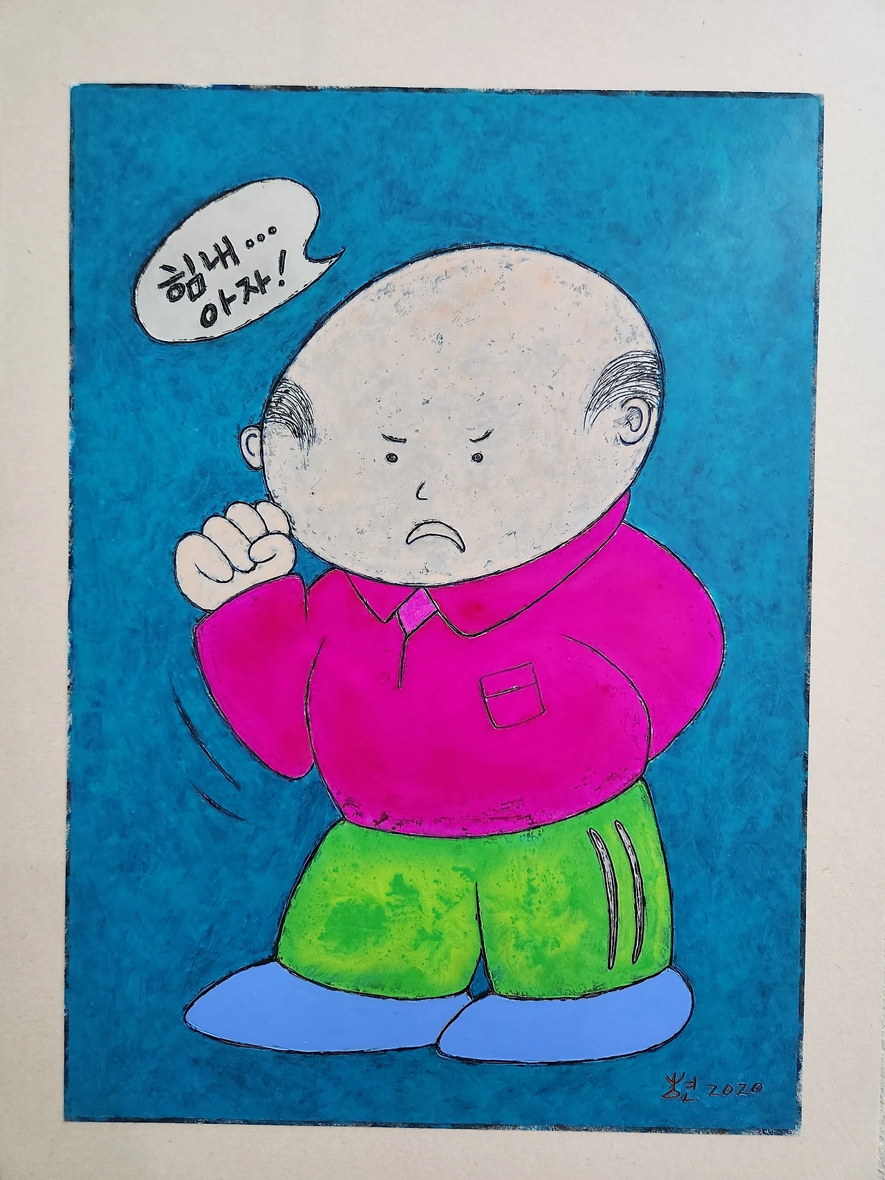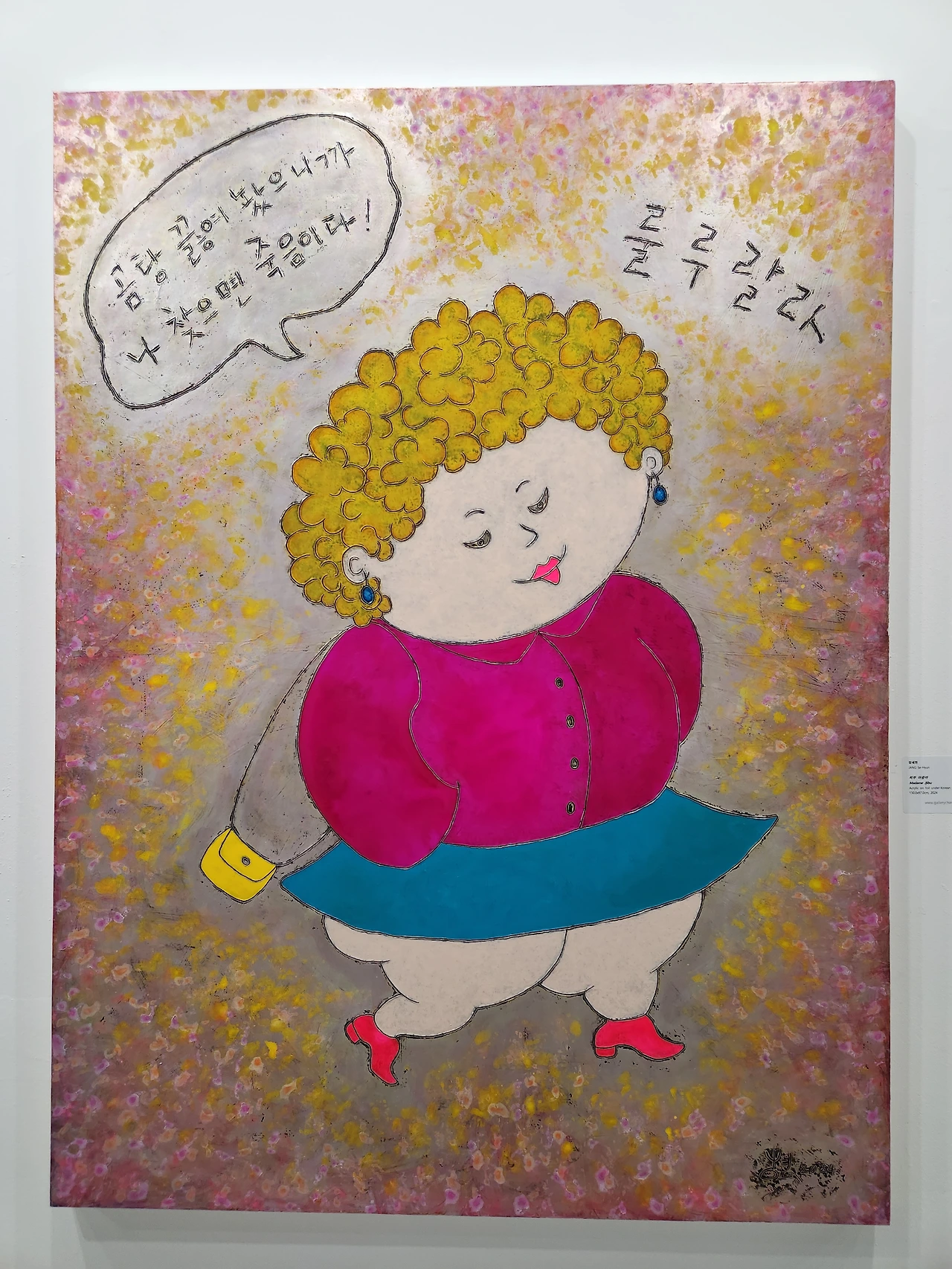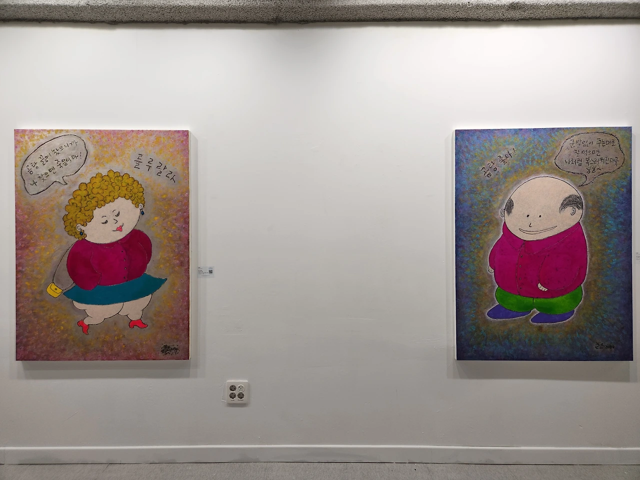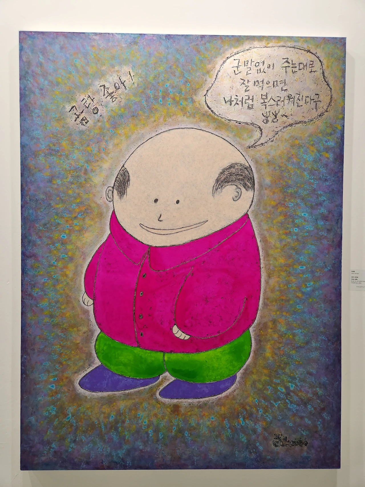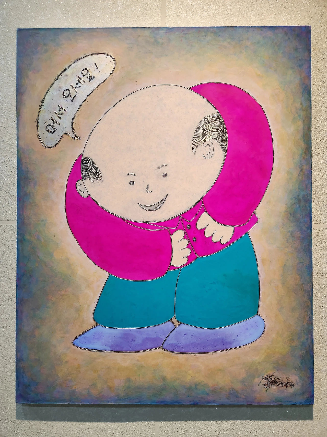 내 그림은 내가 조물주가 되어 창조한 세계, 즉 나의 창세기다. 세계가 풍성할수록 볼거리가 많아진다. 게중엔 팝아트적 성격을 띤 그림도 있다. 바로 찌부 캐릭터다. 자본주의 발전이 극에 달하면서 대량 생산에 따른 대량 소비의 사회 시스템이 견고해지고, 여기서 파생된 대중문화의 회화적 수용과정에서 나온 게 팝아트. 그런 측면에서 찌부 캐릭터는 의도한 건 아니지만 현대사회의 속성과 감성적 울림을 가장 크게 잉태하고 있다. 그래서일까? 이번 전시에서 눈길을 많이 끌고 있다.