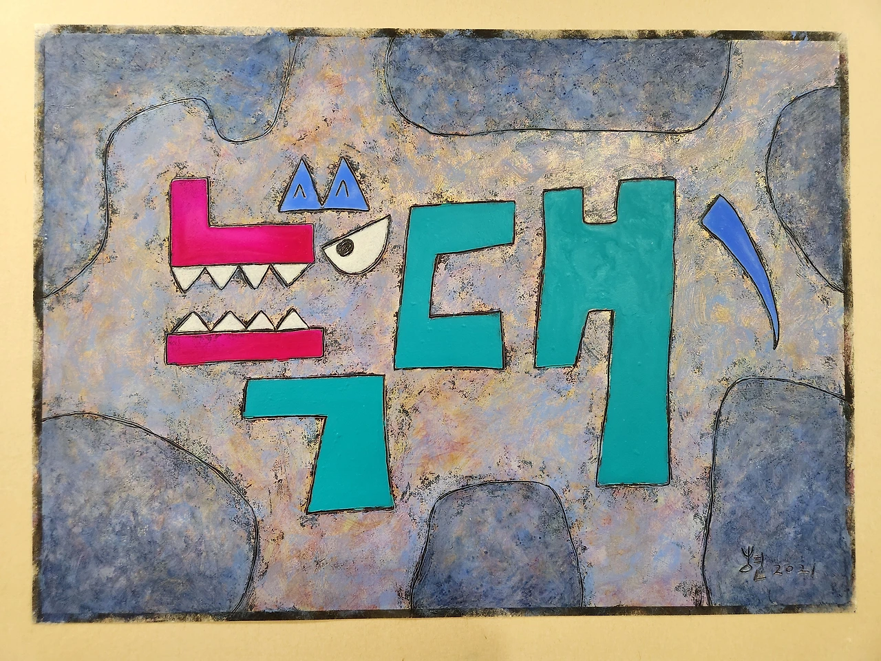나무가 울창해지자면 가지를 많이 뻗어야 한다. 작품 세계도 그렇다고 여긴다. 나에겐 문자추상도 그 가지 중의 하나다. 글자 그림에 관심을 가진 건 오래되었다. 이유는 간단하다. 말을 다루는 일을 하기 때문이기도 하지만 더 근본적인 건 글자에 깃든 주술적 힘 때문이다.