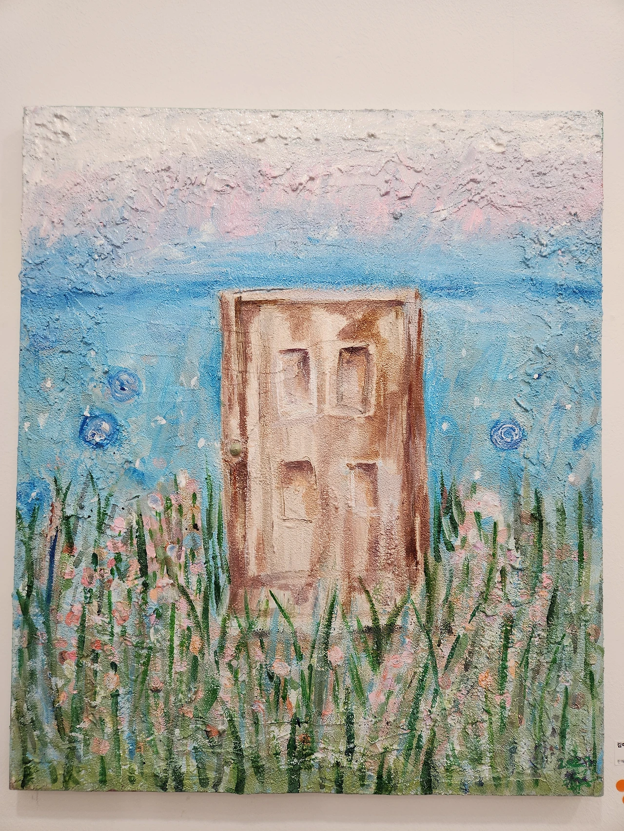 어느 미지의 공간인지 문이 하나 있다. 문앞에는 풀이 무성하다. 작가는 어떤 생각으로 저런 그림을 그리고 왜 하필이면 새문도 아닌 낡은 문이라 제목을 붙였을까. 자신이 서 있는 곳이 낡은 문 안의 공간이라 여겼던 것일까? 열려 있는 것처럼 보이는 화면 속 공간은 오히려 닫힌 공간이 아니었을까? 저 낡은 문을 열고 나가 새로운 세계를 탐닉하고 싶었던 것일까? 화가가 마음 속으로 품은 문밖의 세계가 궁금해진다. 누구나 낡은 문 속에 갇힌 느낌을 받을 때가 있다. 낡은 문에 가둔 건 누구도 아닌 자기 자신일지도 모른다. 그렇다면 그 문을 열 수 있는 것 또한 자기 자신이다. 너무 오래 갇힌 사람은 혼자서는 그 문을 열 힘도 용기도 상실해버릴 수 있다. 너무 늦지 않게 낡은 문밖의 세계로 나가 새로운 세계를 맞이하기를, 그것이 어렵다면 살짝 문틈이라도 벌여서 가늘게 새어들어오는 햇살 한줌에 눅눅해진 마음을 말려보시기를!