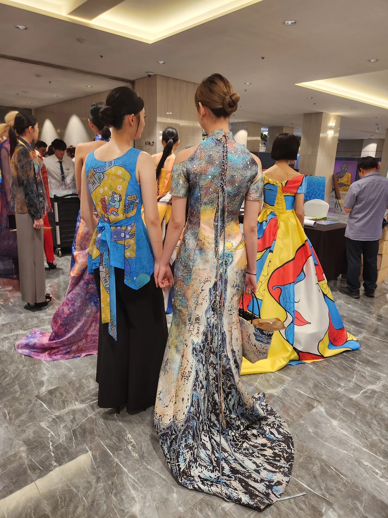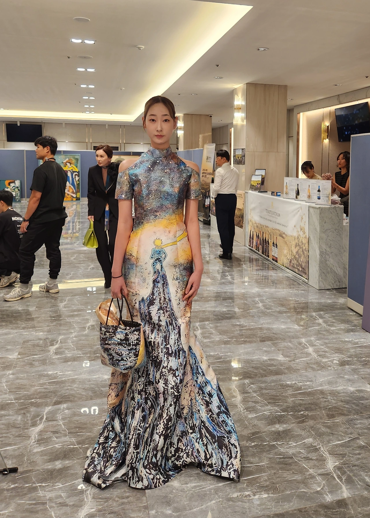 몹시 궁금했다. 어쭙잖은 그림 2점으로 어떤 패션 의상이 나올까? 촌스럽거나 어색하지 않을까? 그림의 색감이 천에 그대로 전이될까? 결과는 모두 기우였다. 드레스는 우아했고 색감은 산뜻했다. 내 손끝에서 나온 작품 이미지가 의상으로 새 새명을 얻는 건 신비롭다고 해도 좋을 만큼 이색적인 경험이었다. 늘씬한 모델들이 그 옷을 입고 런웨이를 할 때는 나의 아바타가 무대 위를 걷는 듯한 착각에 빠질 뻔했다. 의상은 생활이지만 패션은 예술에 가깝다. 생활과 예술이 접목되는 흥미로운 작업은 일회성으로 그치지 않고 앞으로도 쭈욱 이어질 것이다.