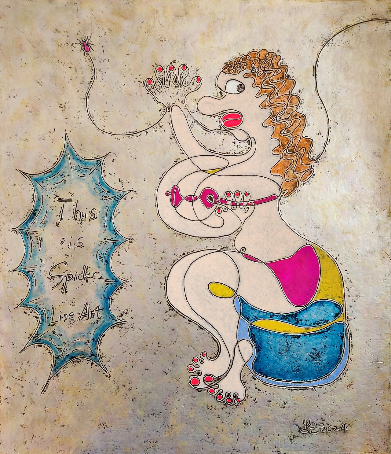 이번에 전시될 작품은 100호대에서 10호대까지 총 14작품인데요. 게중엔 기존 작품과 결을 달리하는 작품이 세 갈래로 선보일 겁니다. 특히 거미줄 아트라 이름붙인 작품은 눈여겨볼 만하죠. 거미가 실을 뽑아 오묘한 직조 솜씨를 발휘하듯 단 하나의 선만으로 화면을 구성하거든요. 팝아트적 성격을 띠고 있어 아주 색다른 느낌일 겁니다.