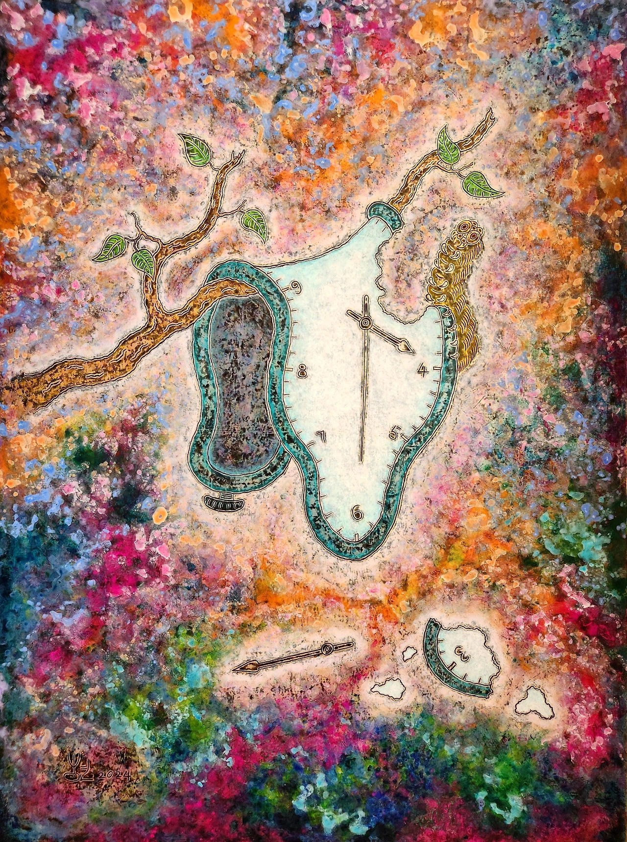 ● <시간의 잠식> - 호일아트(은지화), 130cm×97cm ~ 쿠킹 호일 위에 아크릴 물감을 여러 번 올린 뒤 한지로 배접한 작품.