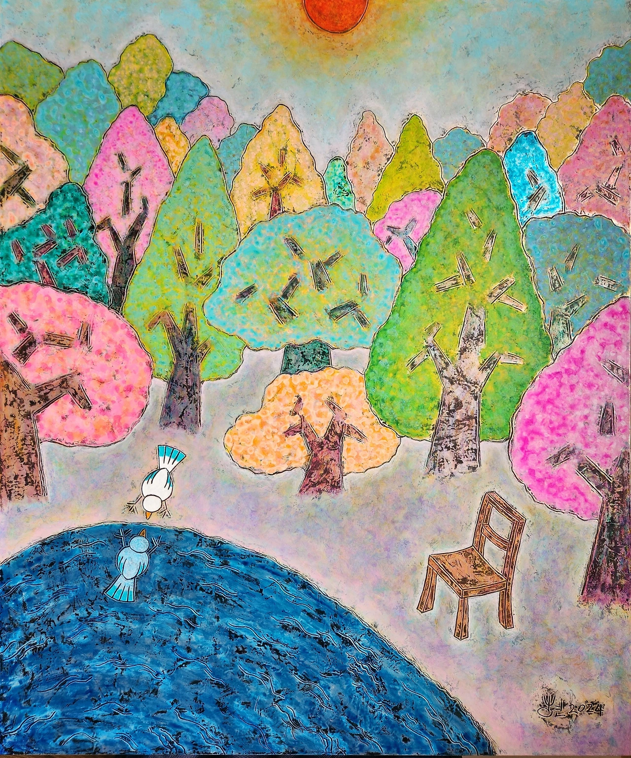 낭만주의적 성향을 지닌 사람은 늘 '이곳'이 아닌 '저곳'을 그리워한다. 유토피아, 무릉도원, 무하유지향, 말은 달라도 뜻하는 바는 다르지 않다. 새와 나무, 시냇물을 좋아하는 나만의 이상향이 종종 그림 속에 실현되곤 한다. 마음의 쉼터가 된다. 그림을 보는 누구든 이곳에서 쉬었다 가도 좋을 일이다!