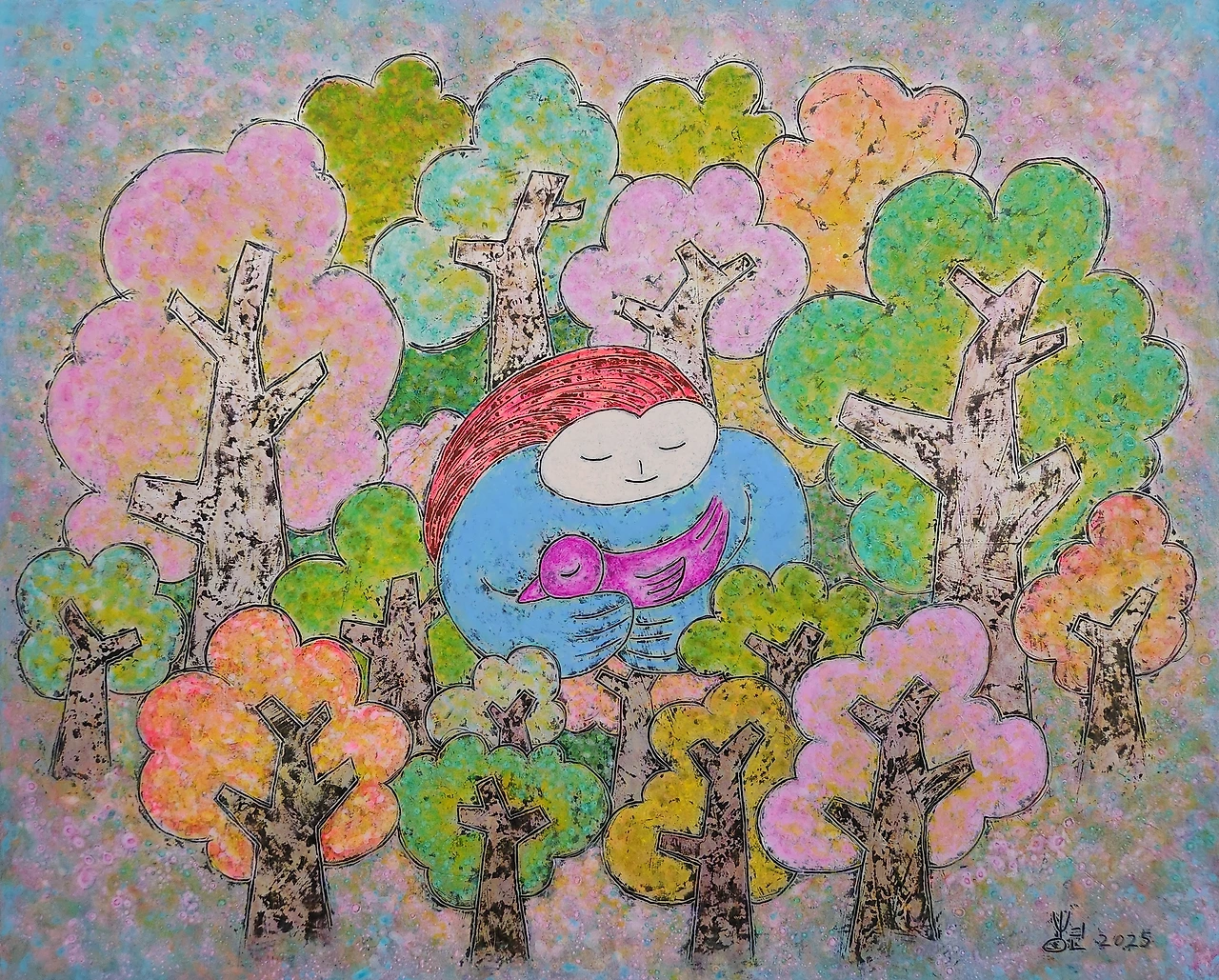 ● <숲의 정령> - 호일아트(은지화), 65.1cm×53.0cm ~ 쿠킹 호일 위에 아크릴 물감을 여러 번 올린 뒤 한지로 배접한 작품.