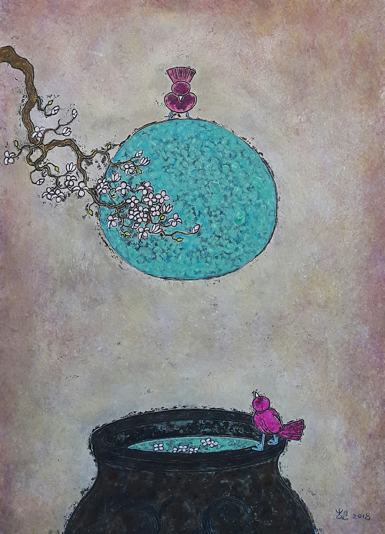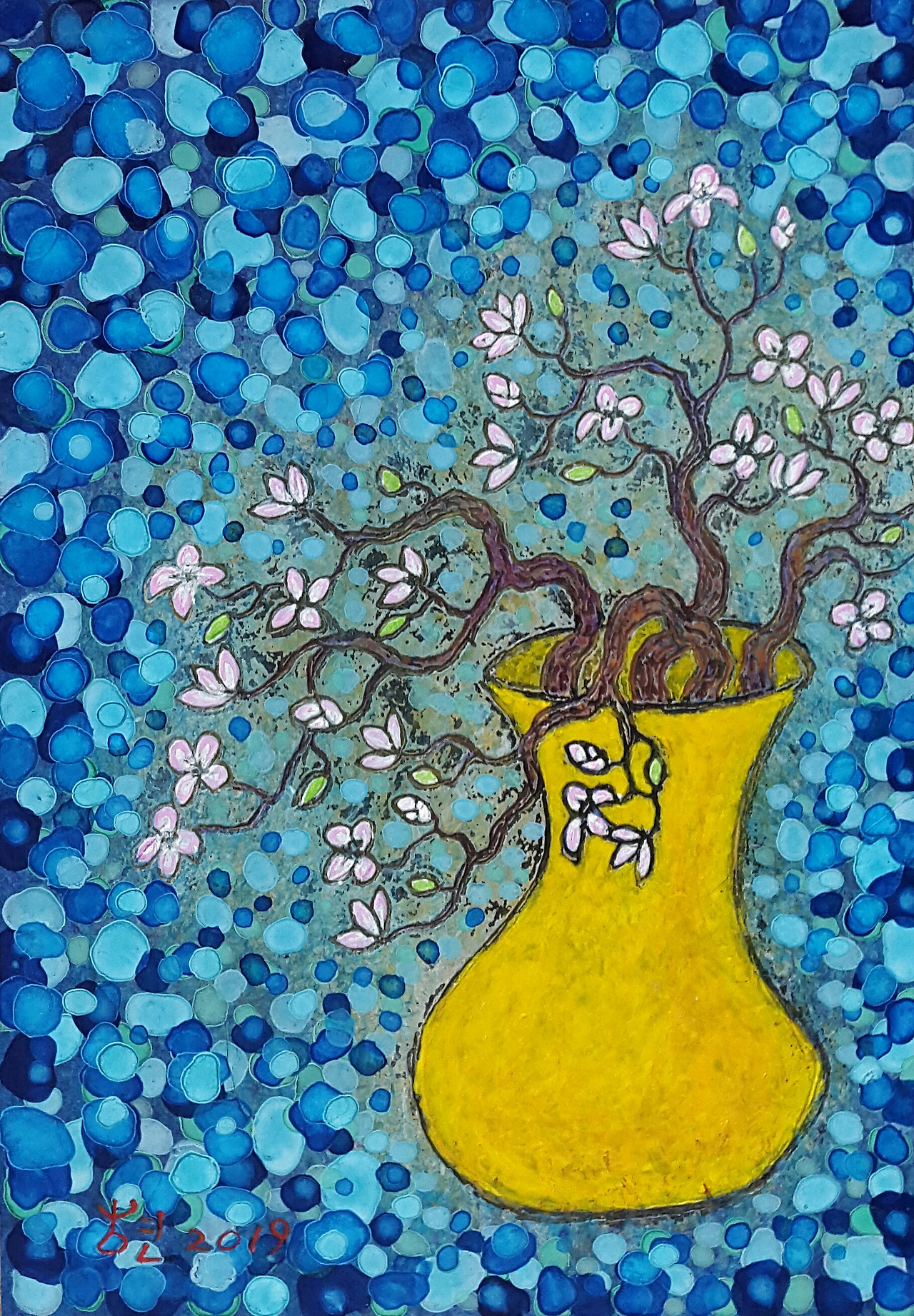 4월에는 봄맞이 은지화 특강을 열게 되었는데요. 은지화(호일아트)가 뭐냐구요? 간단히 얘기하면 여러분이 흔히 쓰는 주방용 쿠킹 호일 위에 그림을 그리는 겁니다. 이중섭의 담배 은박지 그림에 착안하여 제가 개발한 독창적 미술 기법인데요. 쿠킹 호일 위에 아크릴 물감을 여러 번 올린 뒤 한지로 배접한 작품입니다. 실제 작품을 보면 종이나 캔버스 그림과 달리 아주 묘한 색감과 질감이 납니다. 평범한 호일이 멋진 예술작품으로 거듭나는 마법을 경험하실 겁니다. 혹 참가를 원하시는 분은 아래 링크 클릭하여 신청하시면 됩니다.