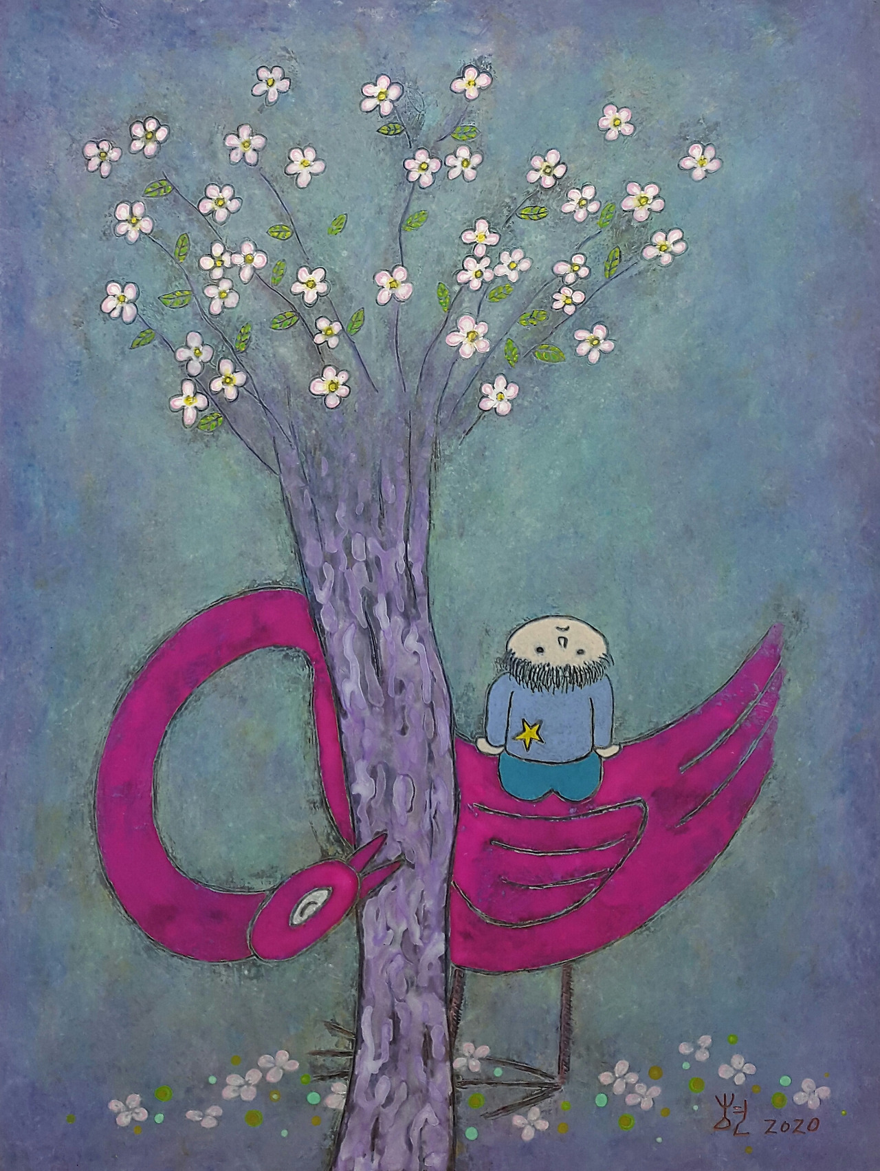 하지만 상상의 세계는 우주처럼 넓어서 무한대로 확장이 가능하다. 고목에 꽃이 피고, 나무 위에 새처럼 집을 짓고, 구름 다리를 걸어 하늘길을 산책할 수도 있다. 현실에서 불가능한 세계를 그림 속에서 꿈꾼다. 그림은 내가 조물주가 되어 창조한 세계다. 그림을 그리는 동안 그 세계로 들어가 자유롭게 노닌다. 그림은 나의 우주이며 놀이터다.