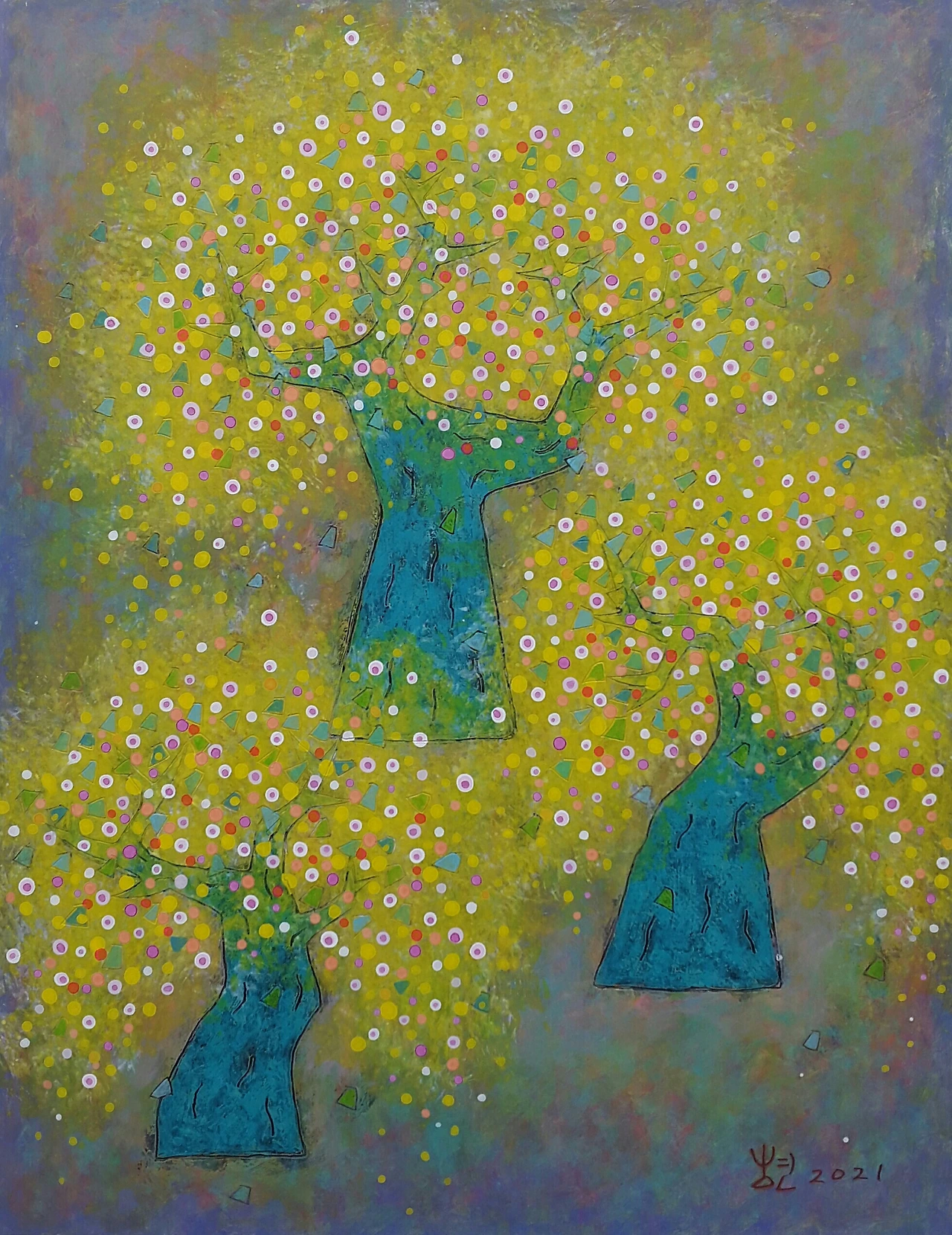 이 오행을 사람의 체질에 적용하기도 하는데 난 볼 것도 없이 무조건 목(나무)의 기운을 가졌을 것으로 확신한다. 나무가 그냥 막 좋다. 다양한 나무의 형태를 그리는 것도 그 때문이다. 좋은 걸 좋아서 그려본다. 나무가 몸을 열어 화사한 꽃을 피웠으니 더 좋지 아니한가!