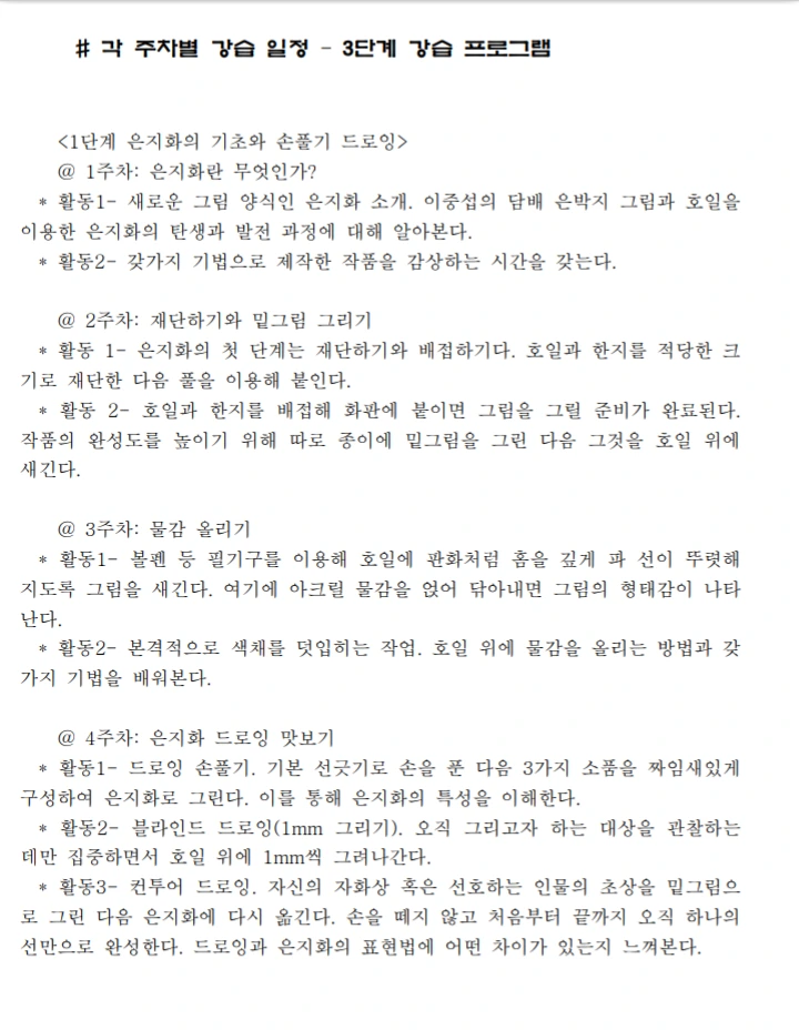 그래서 홍보효과가 있든 말든 강좌내용을 여기다 함 공개해볼까 해요. 3달 12회 강좌인데요. 롯데 청량리점 근처 사시는 분들이 입소문을 내주시면 땡큐~! 이번 강좌가 개설되면 호일 은지화가 공식적으로 세상에 첫선을 보이는 계기가 되겠네요. 잘하면 촌놈 백화점 구경하게 생겼어요ᆢ ㅎ^^