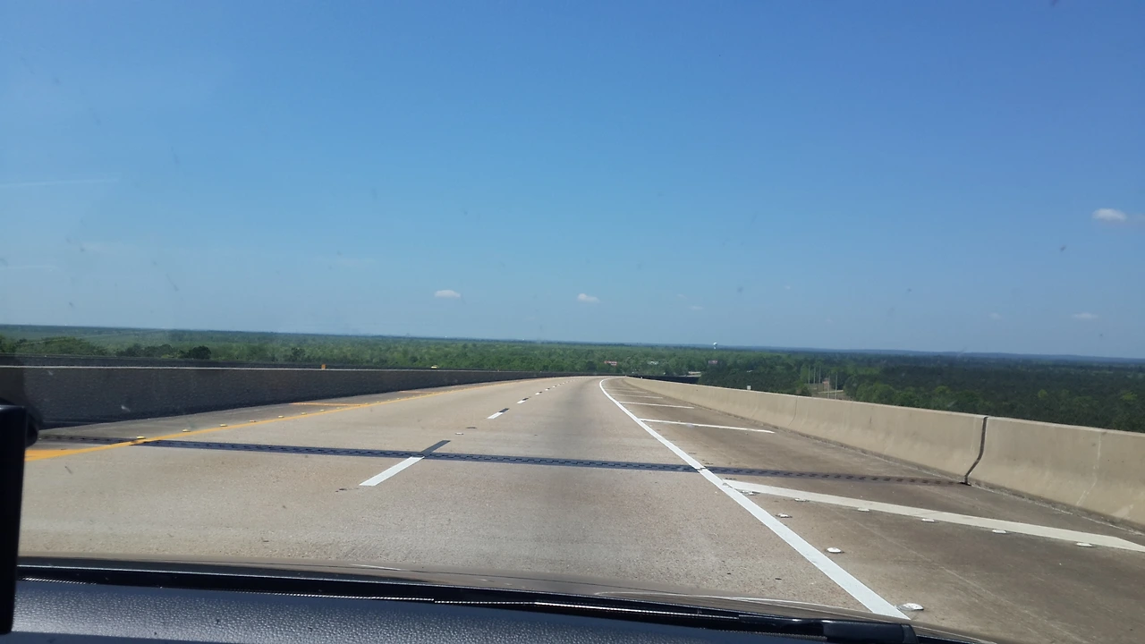 자동차 창문 너머로 보이는 미국 땅…