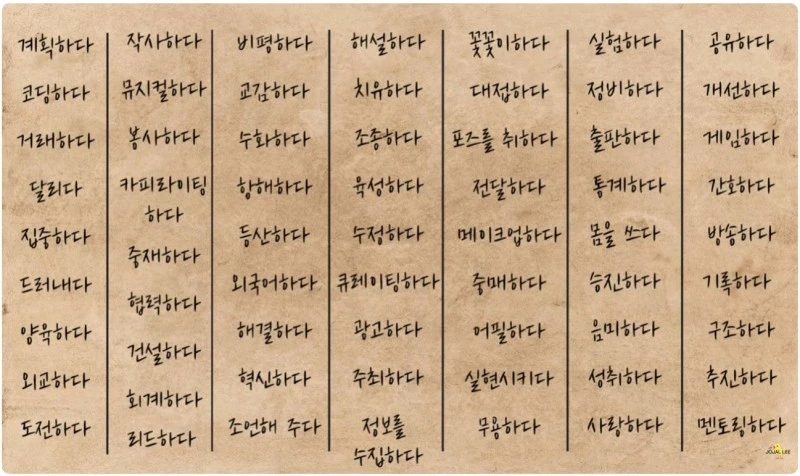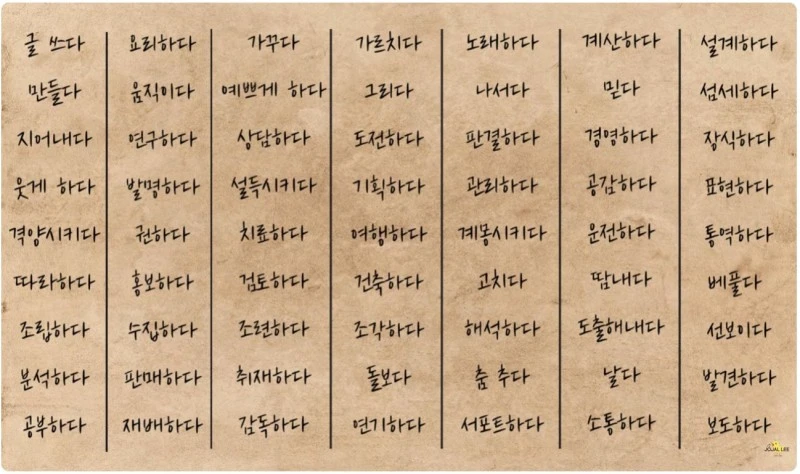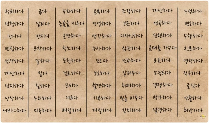 다섯째. 이 동사들을 우리의 직업 또는 하고 싶은 일과 연결하게 되면, 이 단어들을 유심히 뚫어져라 들여다보면 우리가 하고 싶은 일이 보인다고 한다.