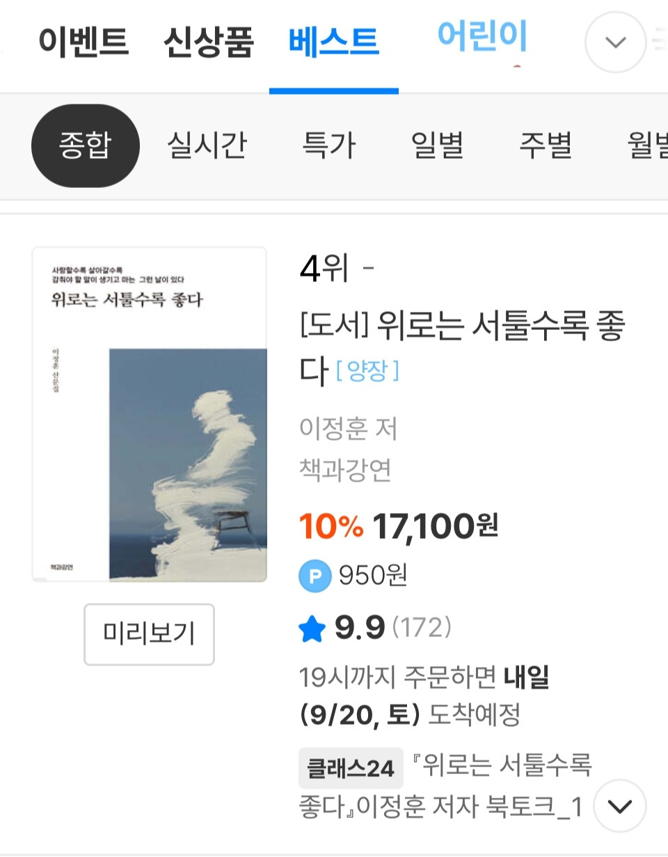 판매를 시작한 지 5일 만에 <국내 종합 베스트셀러 4위>에 올랐다. 전 세계 언어권으로 수출되는 성과까지 만들어내고 있는 중이다. 기적이라고 하고 싶지 않다. 그의 시간들이 만든 당연한 결과다.