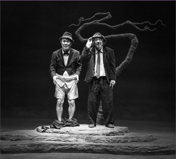 '고도를 기다리며'는 적어도 '고도'라는 환상?!의 대상을 기다린다는 희망이 있었다면, 엔드게임은 체스 게임에서 말이 몇 개 밖에 남지 않은 막판을 의미하는데 처음부터 끝을 향해간다. 이 연출은 나그와 넬은 생략된 버전으로 기울어진 무대에는 의자 하나만 덩그러니 놓여있었다. 주인공의 서사, 상황, 시대 등을 전혀 가늠할 수 없는 배경에서 이질적인 동작들과 오롯이 둘의 대화로만 처음부터 끝까지 이어간다. 고도를 기다리며와 마찬가지로 이 작품에서도 대사와 상황이 반복된다.
