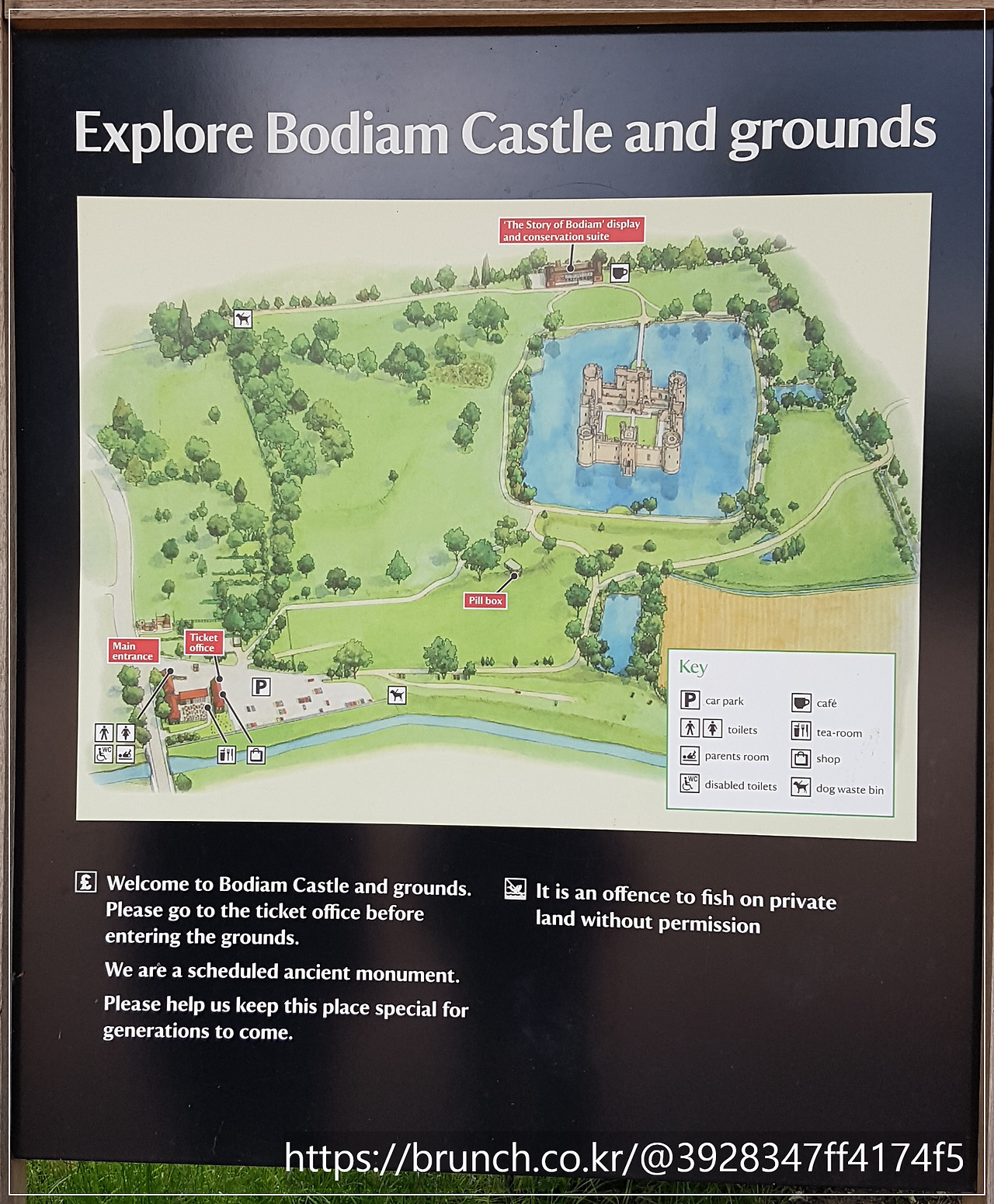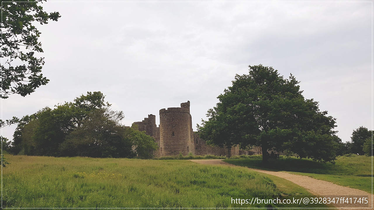 우리는 성 안으로 들어가는 다리를 건너지 않았습니다. 대신 성을 둘러싸고 있는 해자 주변의 산책로를 천천히 걸으며, 물 위에 비친 성의 반영을 감상했습니다. 적당한 거리를 두고 바라본 보디엄 성은 흠잡을 데 없이 완벽했습니다. 하지만 저는 알고 있었습니다.