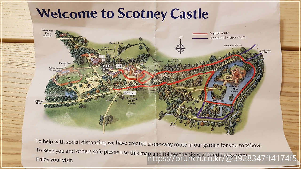 보디엄 성이 겉모습을 지키기 위해 애쓰는 긴장감이 느껴진다면, 스코트니는 무너진 자신의 모습을 있는 그대로 자연에게 내어주는 편안함이 있었습니다. 우리는 비록 당시 내부 출입을 허락하지 않아서 무너진 벽 사이를 아이들과 함께 뛰어다니지 못했지만, 해자 주변의 산책길을 돌면서 360도의 모습을 볼수 있었습니다. 손으로 돌의 감촉을 느끼지 못했지만 그 질감은 충분히 느낄수 있었습니다. 걸으면서 느낀 숲의 향기는 잔잔한 온기로 편안함을 줍니다.