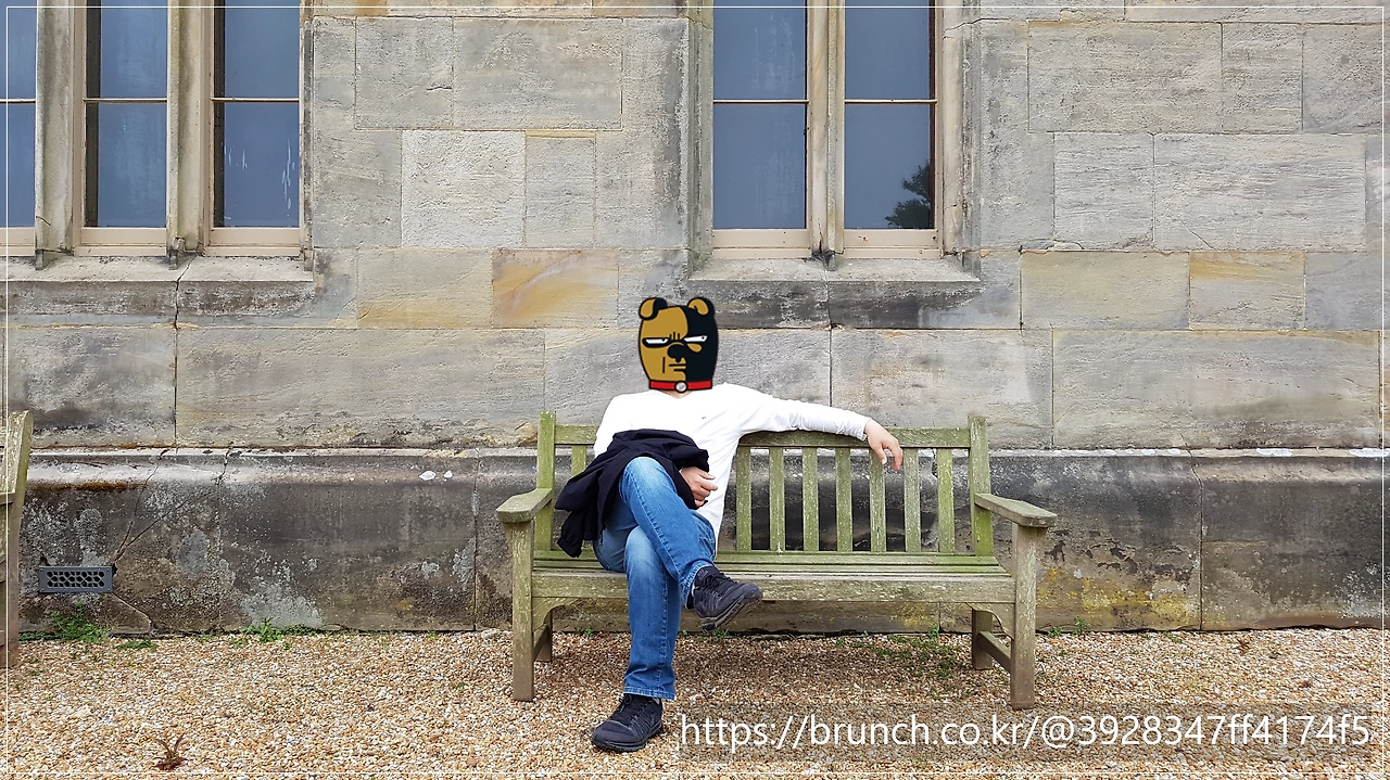 그리고 제가 좋아하는 이 샷이 여기서 탄생합니다. 건물 벽의 색깔과 무늬가 이끼가 끼어있는 의자와 아주 잘 어울립니다.