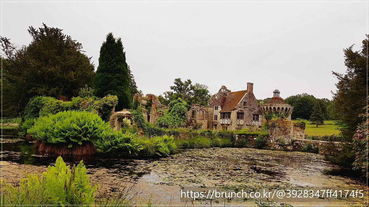 보디엄이 '감추고 싶은 공허'라면, 차로 20분 거리에 있는 '스코트니 캐슬(Scotney Castle)'은 '드러내어 아름다운 폐허'입니다.