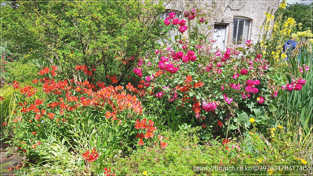 차에서 내리자마자 훅 끼쳐오는 진한 장미 향기. 이곳은 코프 캐슬처럼 전쟁의 상처를 전시하는 곳이 아니었습니다. 허물어져 가는 붉은 벽돌 폐허는 이제 꽃들을 위한 가장 드라마틱한 배경이 되어 있었습니다.