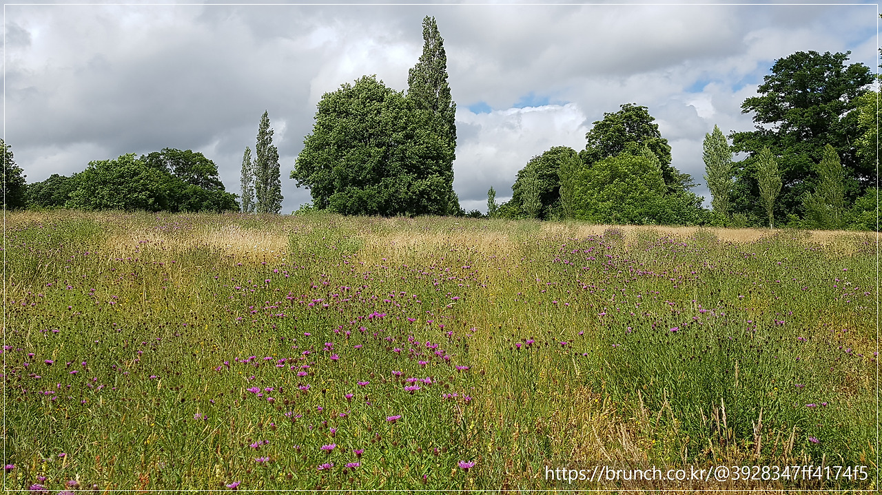 정원 안에서의 경험이 밀도 높은 예술작품을 보는 것 같았다면, 정원 밖은 자유 그 자체였습니다. 우리는 벽돌담을 벗어나 성 주변을 감싸고 있는 드넓은 초지(Meadow)와 호숫가를 걸었습니다.