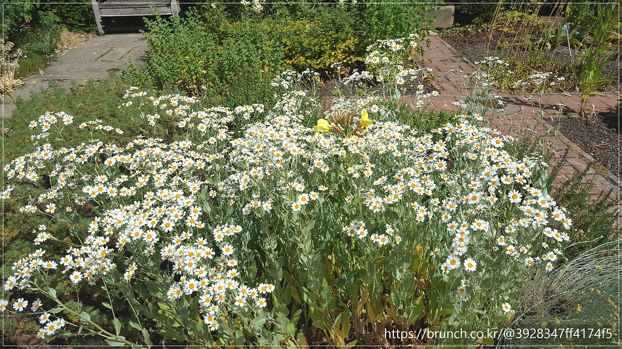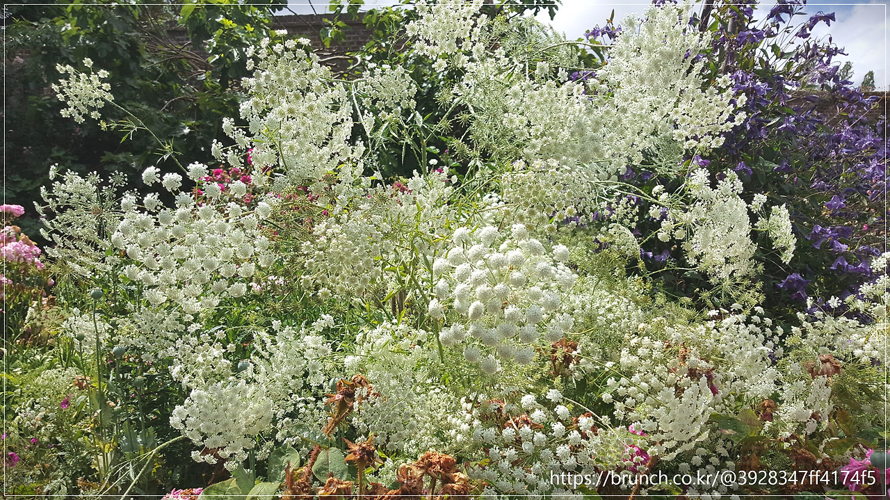 담벼락 건너 정원의 공간들의 화려한 색의 꽃들과 대비됨은 순백의 꽃들과, 은빛 쑥류가 어우러진 풍경은 단순한 '깨끗함'을 넘어선 '숭고한 화려함'이었습니다.