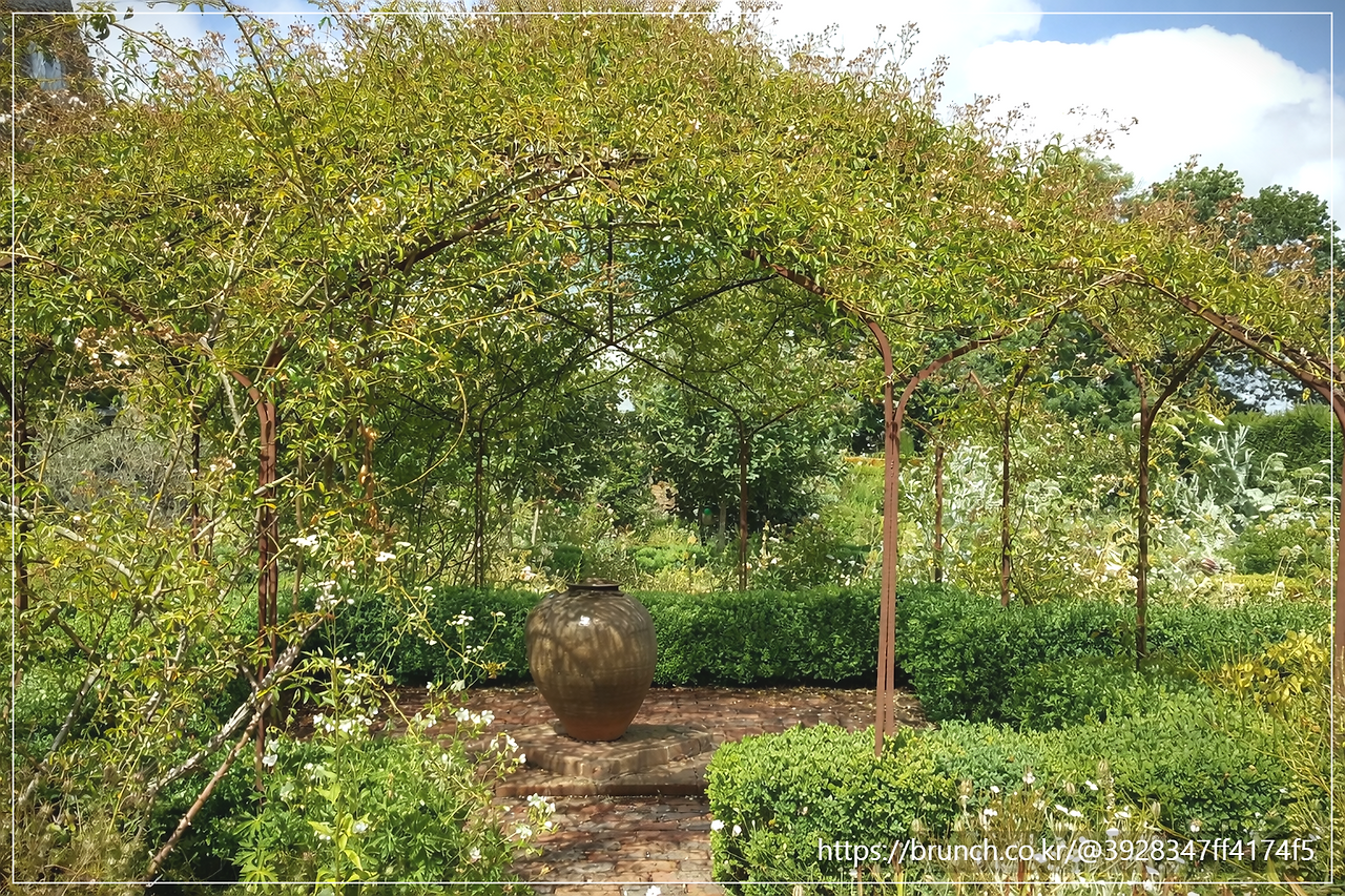 그리고 마침내 도착한 이 정원의 클라이맥스, '화이트 가든(White Garden))'. 이곳은 오직 흰색 꽃과 은회색 잎을 가진 식물들만 허락된 공간입니다. 의사인 저에게 흰색은 늘 차가운 가운이나 병실의 색이었습니다. 하지만 이곳의 흰색은 달랐습니다. 햇살을 받아 보석처럼 부서지는 하얀 꽃잎들은 '빛의 폭발'이었습니다.