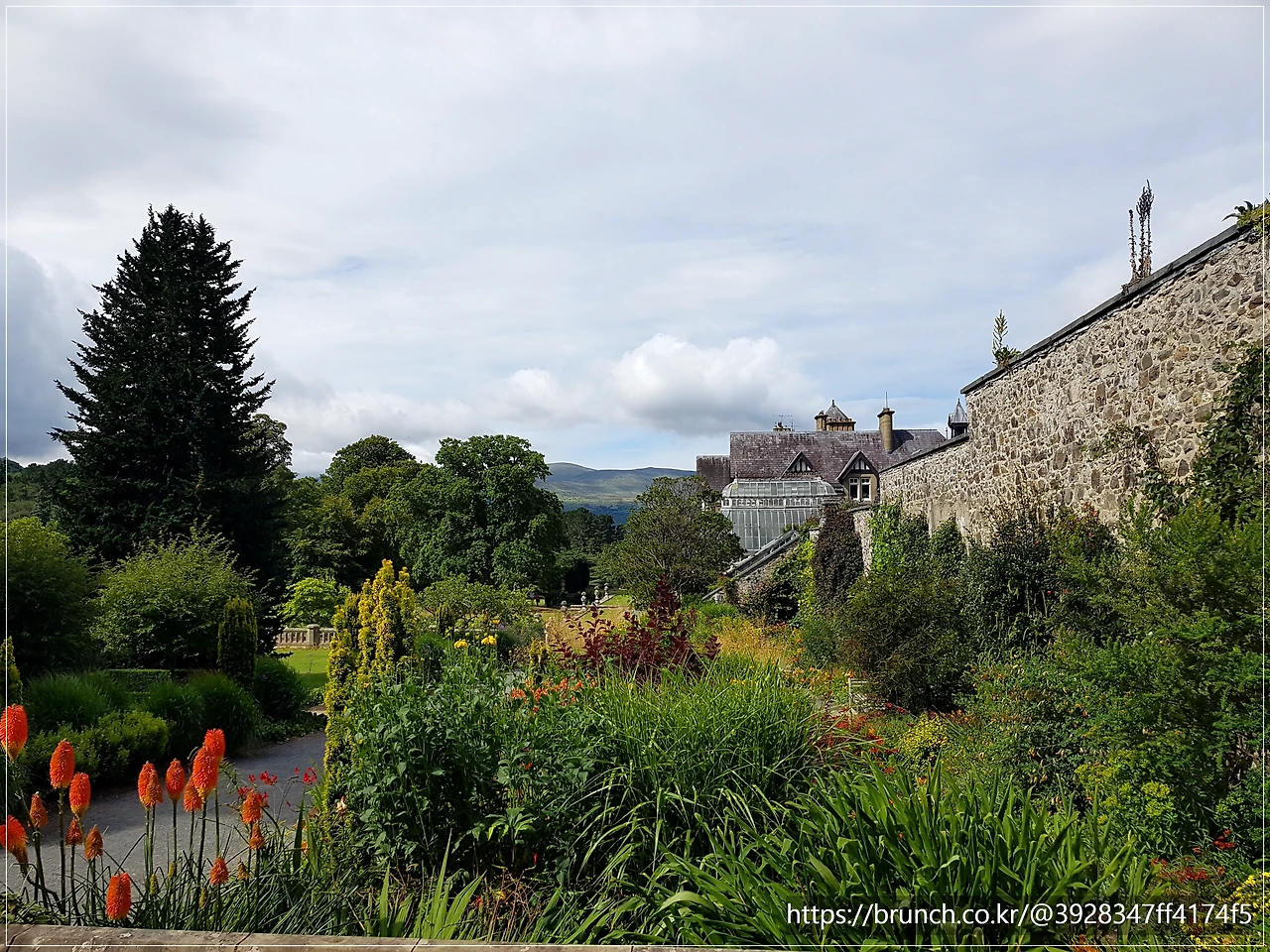 테라스에 서서 연못과 주변의 수많은 꽃들과 저택 뒤로 바라보이는 스노도니아 산맥을 바라보는데, "아, 이게 바로 웨일스의 품격이구나"라는 감탄이 절로 나왔습니다. 하지만 이곳의 진짜 매력은 이 단정한 아름다움 뒤에 숨겨진 '반전'에 있었습니다.