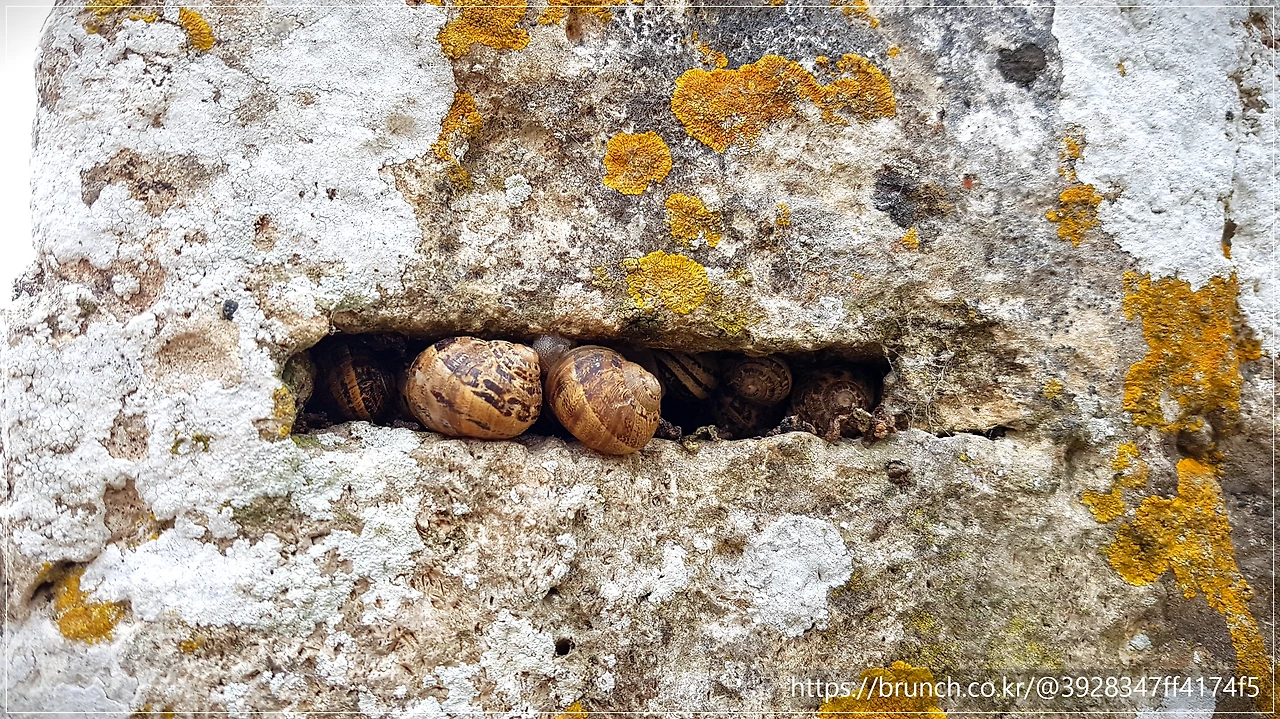 무너진 성벽에 기대어 앉았습니다. 이 무너진 성벽의 돌틈 사이에도 수많은 생명이 살고 있는 것이 보입니다. 바쁘게 지내다 어느날 찾아온 낯선 곳에서 거기에 앉아야만 보이는 사소한 것들이 눈에 보였습니다.
