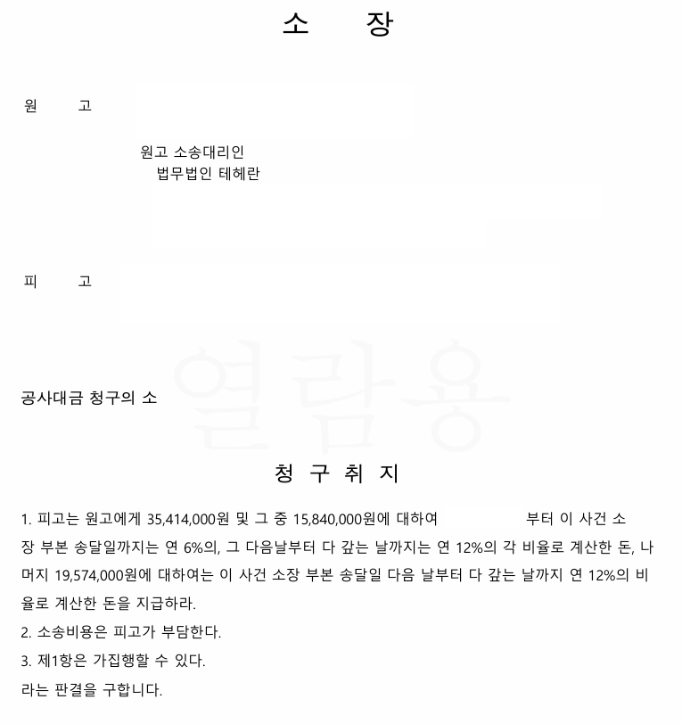 지금까지 공사대금청구소송 도대체 어떻게 진행되는 건지, 필요한 서류는 어떤 것이 있는지 알아봤습니다.