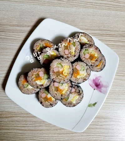 오이를 길게 썰어서 소금에 절이고 계란지단을 붙이고 당근을 볶고 햄과 맛살을 굽고 단무지와 김을 준비한다. 밥이 완성되면 약간의 소금과 식초 참기름 매실청을 뿌리고 간을 한다. 여기서 매실청은 음식이 상하는 걸 늦춰주는 역할과 소화에 도움을 준다.