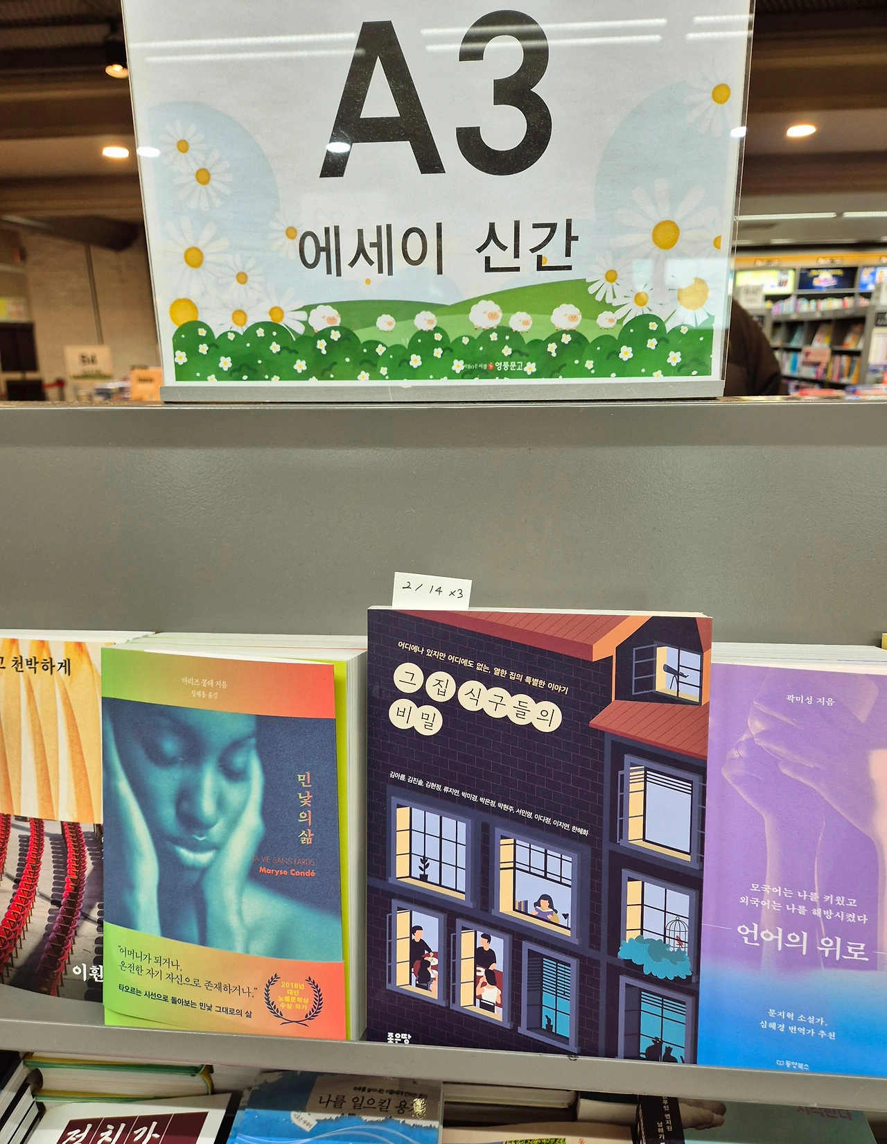 신간 에세이 코너에 가니 전시코너에서는 볼 수 없어서 그 밑 공간 책꽂이를 하나하나 세밀하게 보던 중 [그 집 식구들의 비밀]을 찾을 수 있었다. 순간 '피식' 웃음이 났다.