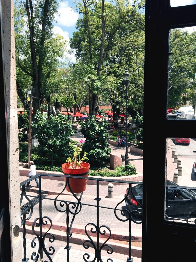 창밖은 바로 쁠라사 엠바하도라. 지나가는 사람들 구경하며 햇살을 만끽하는 나의 아침.