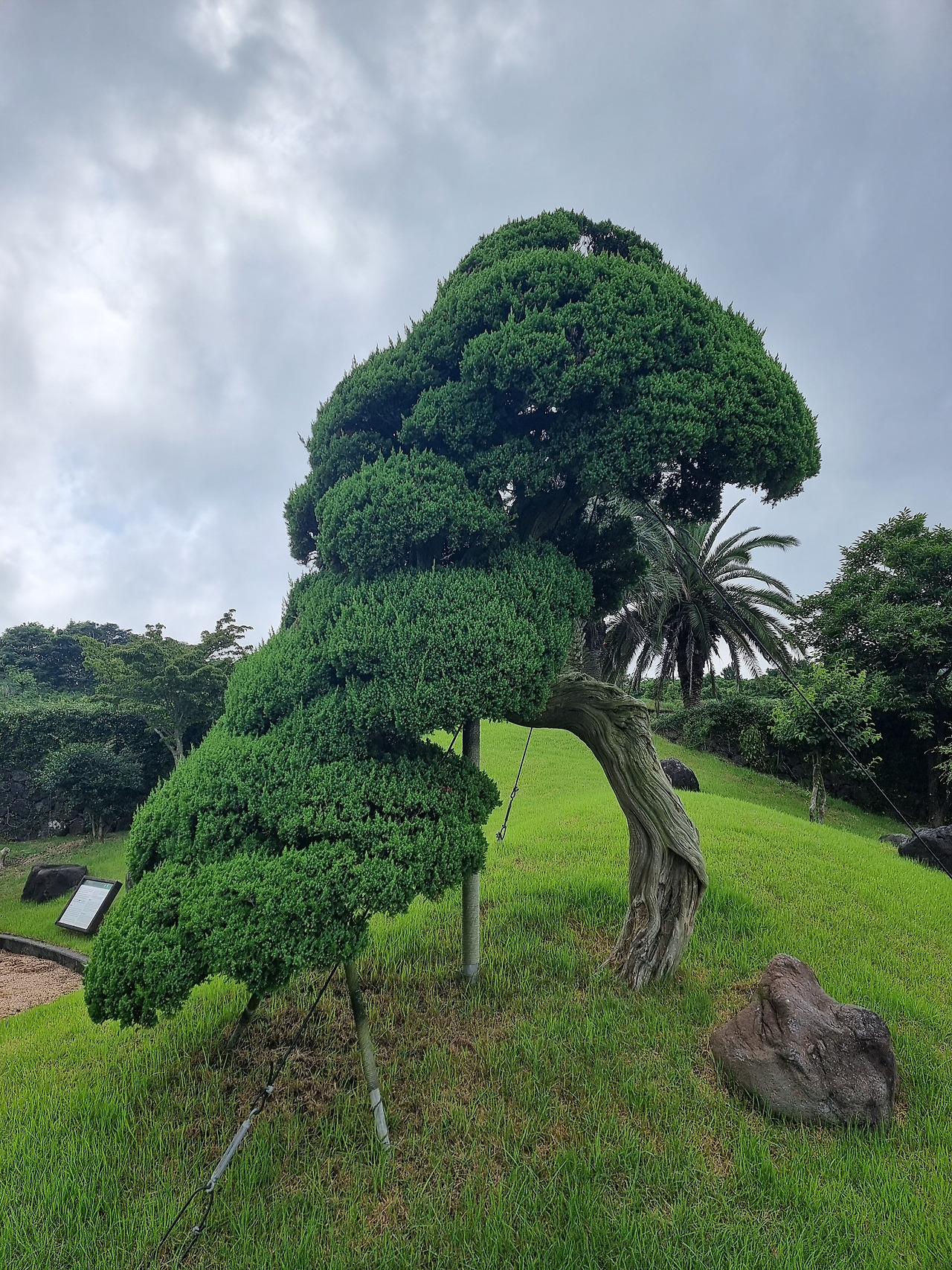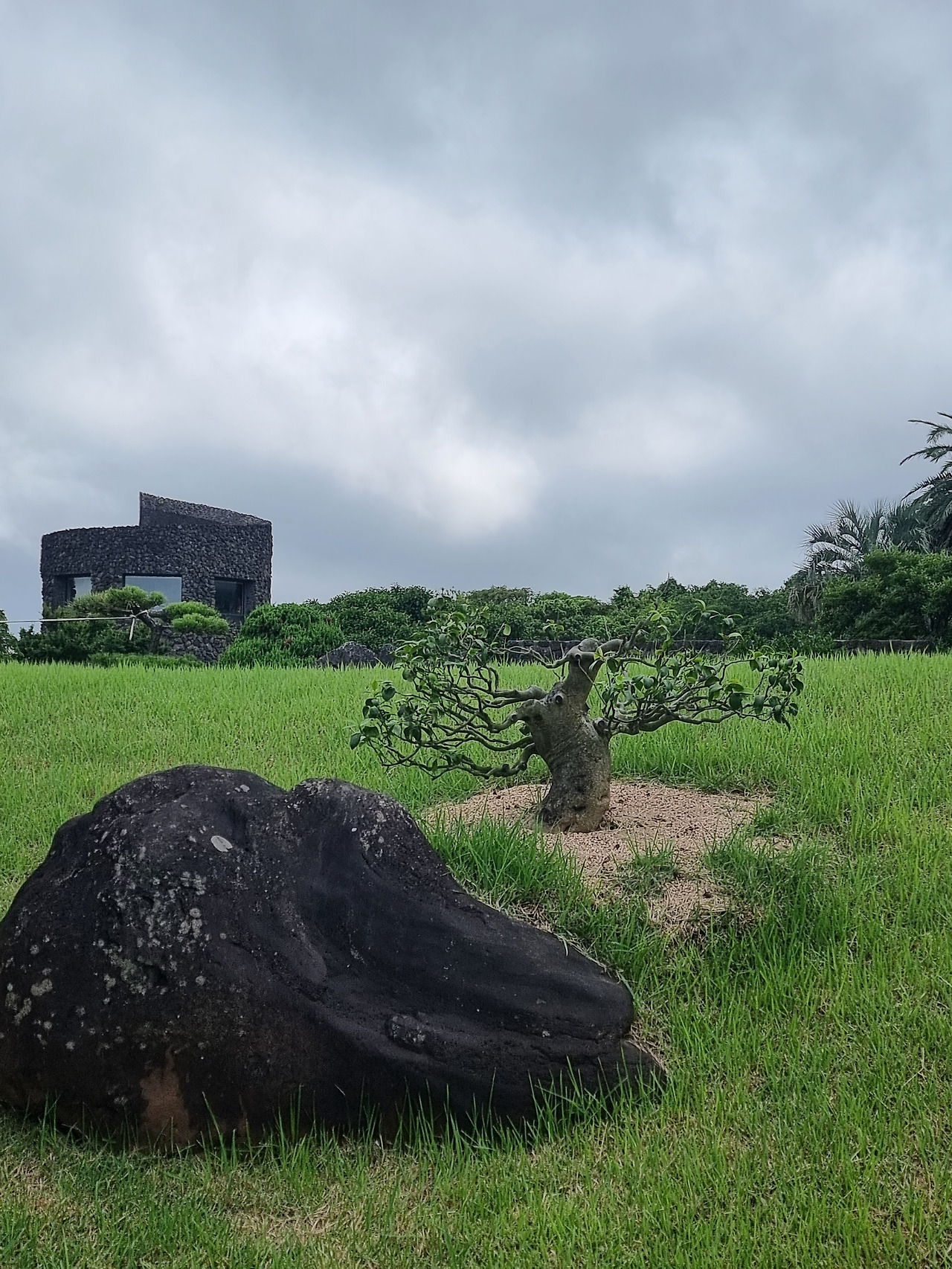 먼저 눈에 띈 것은 나무보다도 제주의 돌로 거대한 성벽처럼 쌓아 올린 건축물들이었다. 그런데 소개글을 보니 모두 오랜 시간 하나하나씩 쌓아 올린 것이란다. 놀라움을 한 편으로 정원의 분재를 보게 되었는데, 그동안 화분에 정성스럽게 관리되어 있는 분재와는 다른 것들이었다. 나무 하나하나의 생김새와 규모 그리고 정교하게 다듬어져 있는 모양새가 하나하나 작품이라고 느끼기에 충분했다. 생각하는 정원의 분재는 그냥 보기에도 오랜 시간의 정성과 노력이 담겨있었다. 정원에는 성범영 선생이 정원을 조성하며 느낀 경구들이 여기저기 돌이나 나무에 새겨져 있는데, “정원은 보는 것이 아니라 느끼는 것이다”라는 말도 그중 하나이다. 내 부족한 언어로 표현하기보다는 작품을 느끼는 것이 맞는 것 같다.