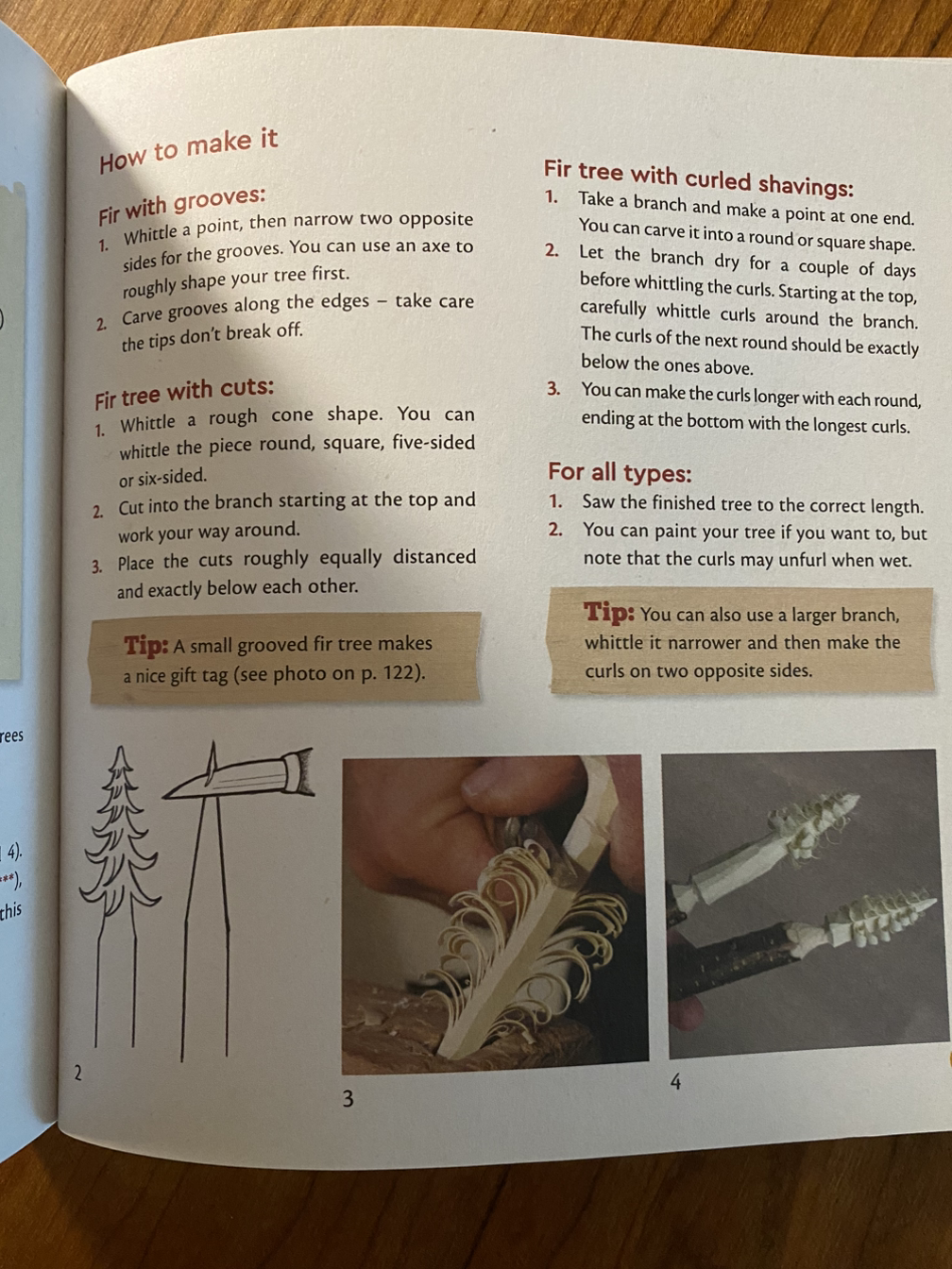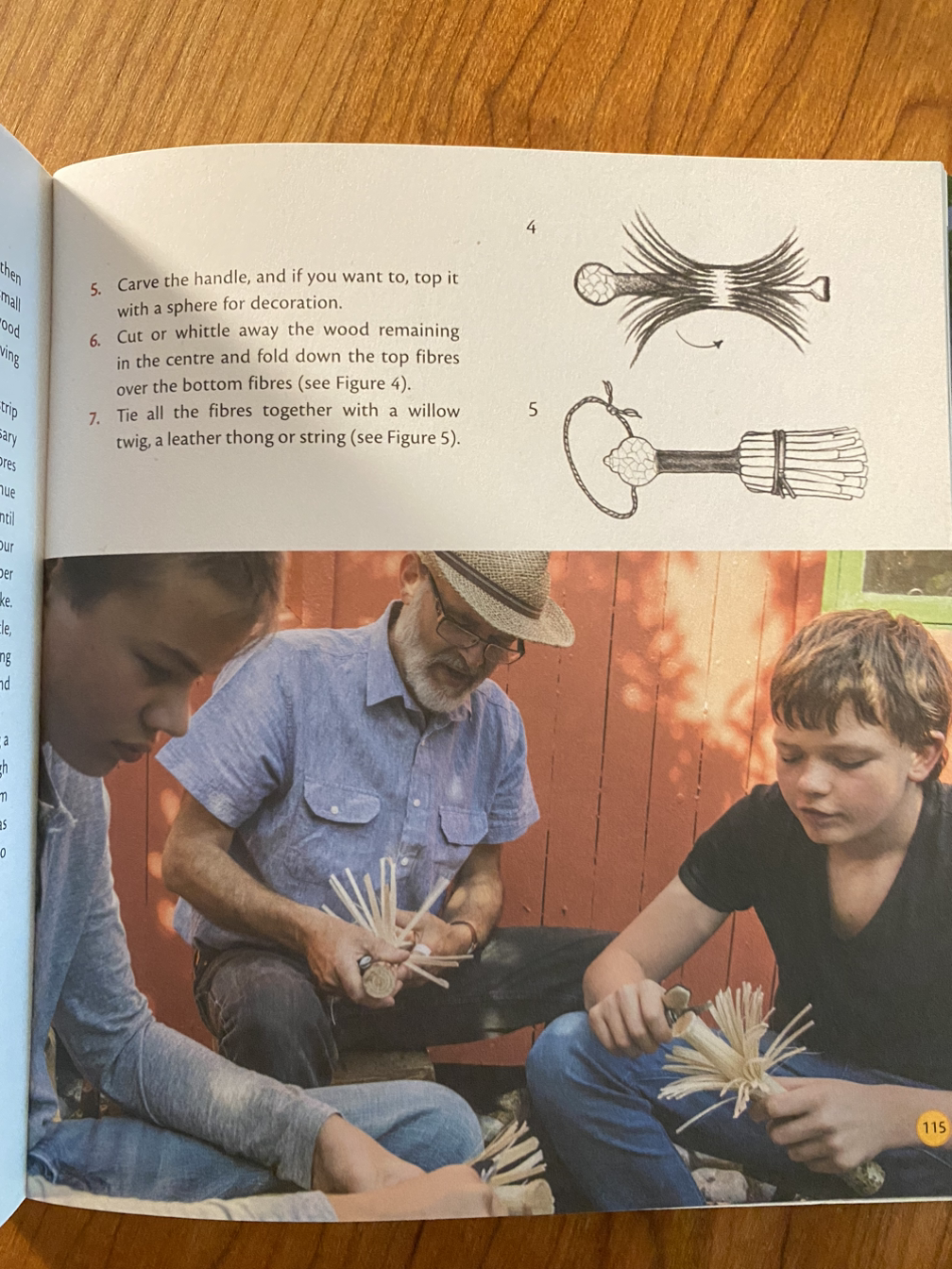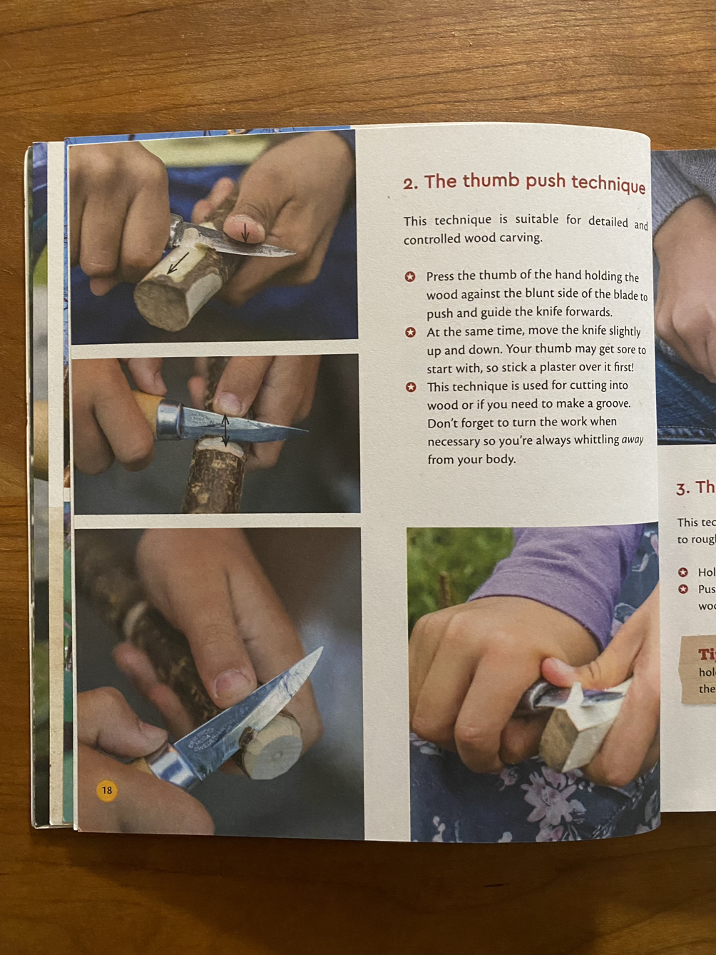 시작하기에 앞서 적절한 칼을 고르는 방법이 나와 있는데 이제 막 배우기 시작한 어린아이들은 감자 필러로 나뭇가지 껍질을 벗기는 것부터 연습하기를 추천하고 있습니다. 그다음은 날 끝이 무딘 나이프나 칼날 일부분을 접착테이프로 감아서 사용하는데 참 괜찮은 방법이네요.