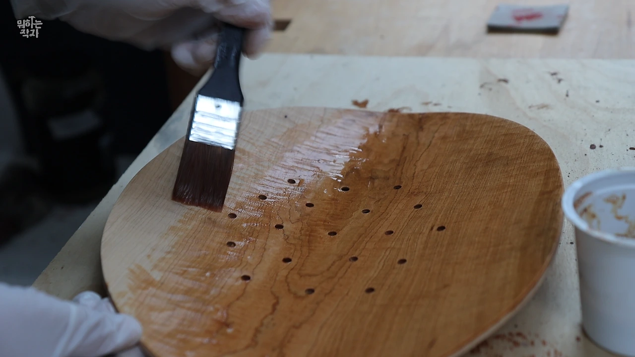 지난번 피나무보다 살구나무에 탄닌이 많이 함유되어 있어서인지 확실히 깊은 흑색으로 표현되고 칠하기 전보다 칠하고 난 후 강도도 높아진 느낌이다. 어디까지나 내 느낌.