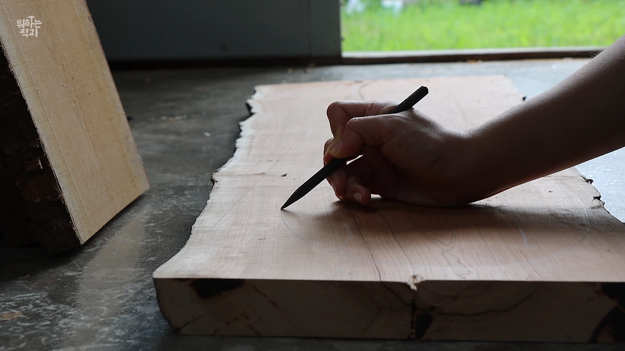 그동안은 주로 수입 건조목을 써왔는데 목재 가격 상승이 발단이 되어 국산목재에 관심을 갖게 되었다. 몇 가지 구입한 것들 중에서 결이 맘에 들었던 살구나무. 뒷면에 크랙이 있어 조금 저렴한 가격에 올라와 있었는데, (무슨 심리인지 잘 모르겠지만 난 흠이 있는 것에 끌리는 편이다) 실제로 받아보니 생각보다 크랙 면적이 넓고 깊었다. 잘 살려 독특하게 마감하겠다는 누가 시키지도 않은 임무를 부여하고 작업을 시작했는데, 결과는 뭐...
