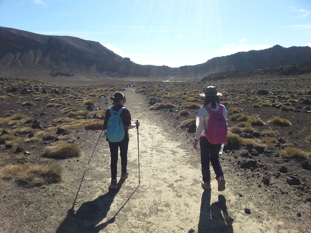 귀가 아프다고 큰 일은 안 일어날 것 같아서 아이와 Big Deal을 하기로 했다. 참고 견디고 완주하면 핸드폰 바꾸어주기로...(이건 뒤에 후회할 일이었다. 너는 아마도 과하게 통증을 표현한 것 같았으니까 ㅠㅠ). 통증이 어디론가 사라지고 다시 걷기 시작했다. 활화산인 Mt. Ngauruhoe 정상이 보이고 이제 올라가야 할 언덕이 보인다. 아이고.. 그리고 1시간쯤 걸으니 2번째 화장실도 보인다. 얼른 일 보고..(화장실이 보일 때마다 일을 처리해야 했다. 언제 무슨 일이 일어날지 모르니).