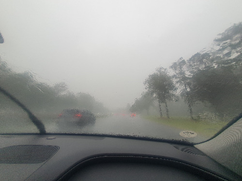 미국에서 지내는 동안 비가 내리면 짧게 내리는 소나기였기에 비가 오면 잠시 피했다가 치기로 했지만갑자기 내리는 비는 앞이 보이지 않을 만큼 오기 시작했다.