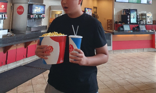영화를 보기 전에 팝콘과 콜라를 샀는데 너무 큰 팝콘과 콜라 사이즈에 놀랬다. 그리고 콜라의 종류가 많아서 아들은 유튜브에서만 봤던 다양한 맛의 콜라들을 조금씩 맛을 보고좋아하는 체리콜라맛으로 선택해서 영화관으로 들어갔다. 다양한 콜라의 맛을 볼 수 있었던 것은 미국 영화관의 음료는 계산하고 컵만 받아서 셀프로 먹을 수있기 때문이었다.