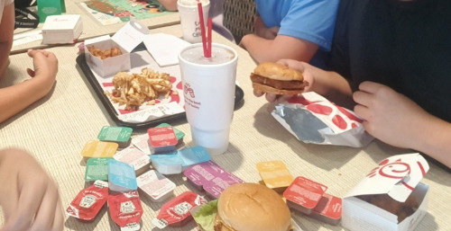 그래서 고맙다고 소스를 받았는데 햄버거보다 소스를 더 많이 받아서 중2아들은 당황했다. 중2아들은 다양한 종류의 소스 때문인지 친절했던 직원 때문인지 칙필레(Chick-fil-A)가 파이브가이즈(Five Guys) 보다 더 맛있다고 했다.